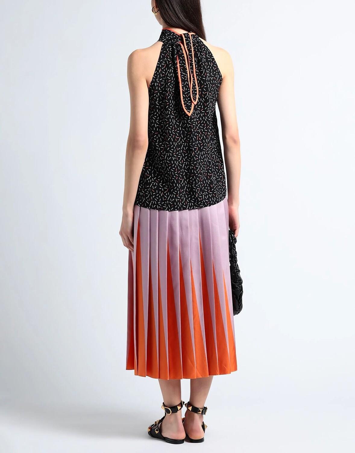 Креп, без аппликаций, разноцветный рисунок, водолазка, без рукавов, завязка, без карманов