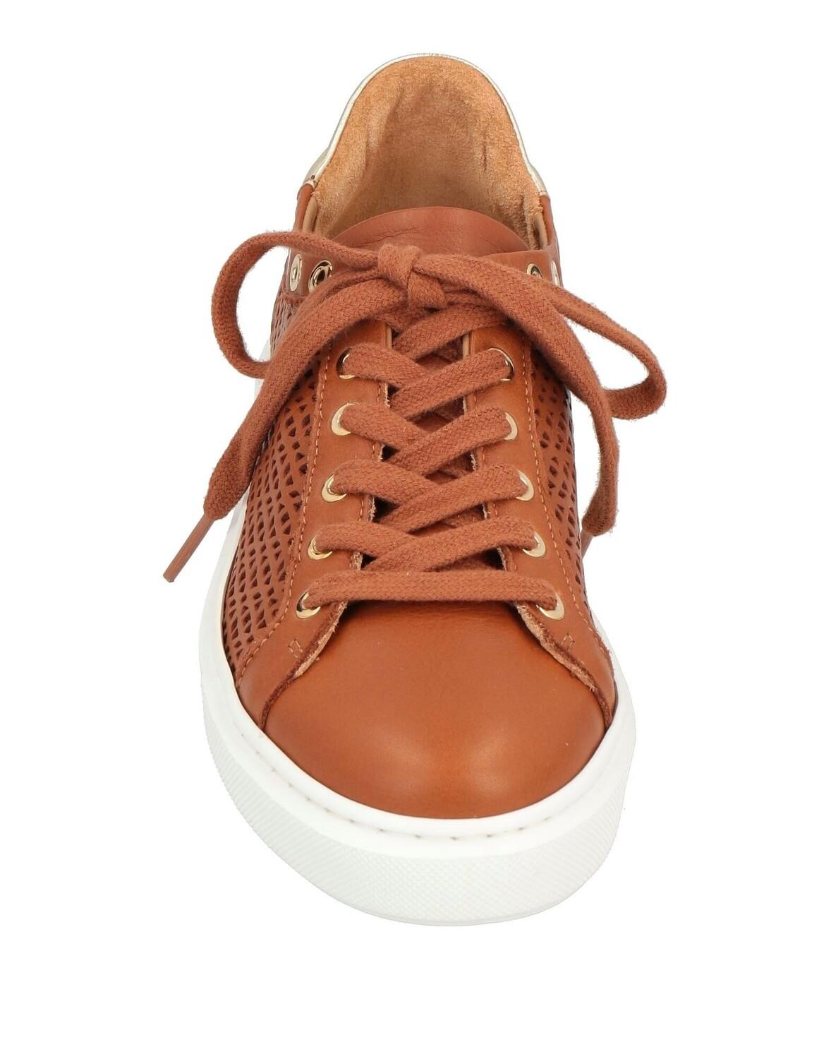 Кожа, эффект ламинирования, металлические аппликации, двухцветный цвет, подкладка из кожи, шнуровка, скругленный носок, плоская поверхность, подошва с резиновым тиснением, содержит нетекстильные части животного происхождения, низкие кеды и кроссовки