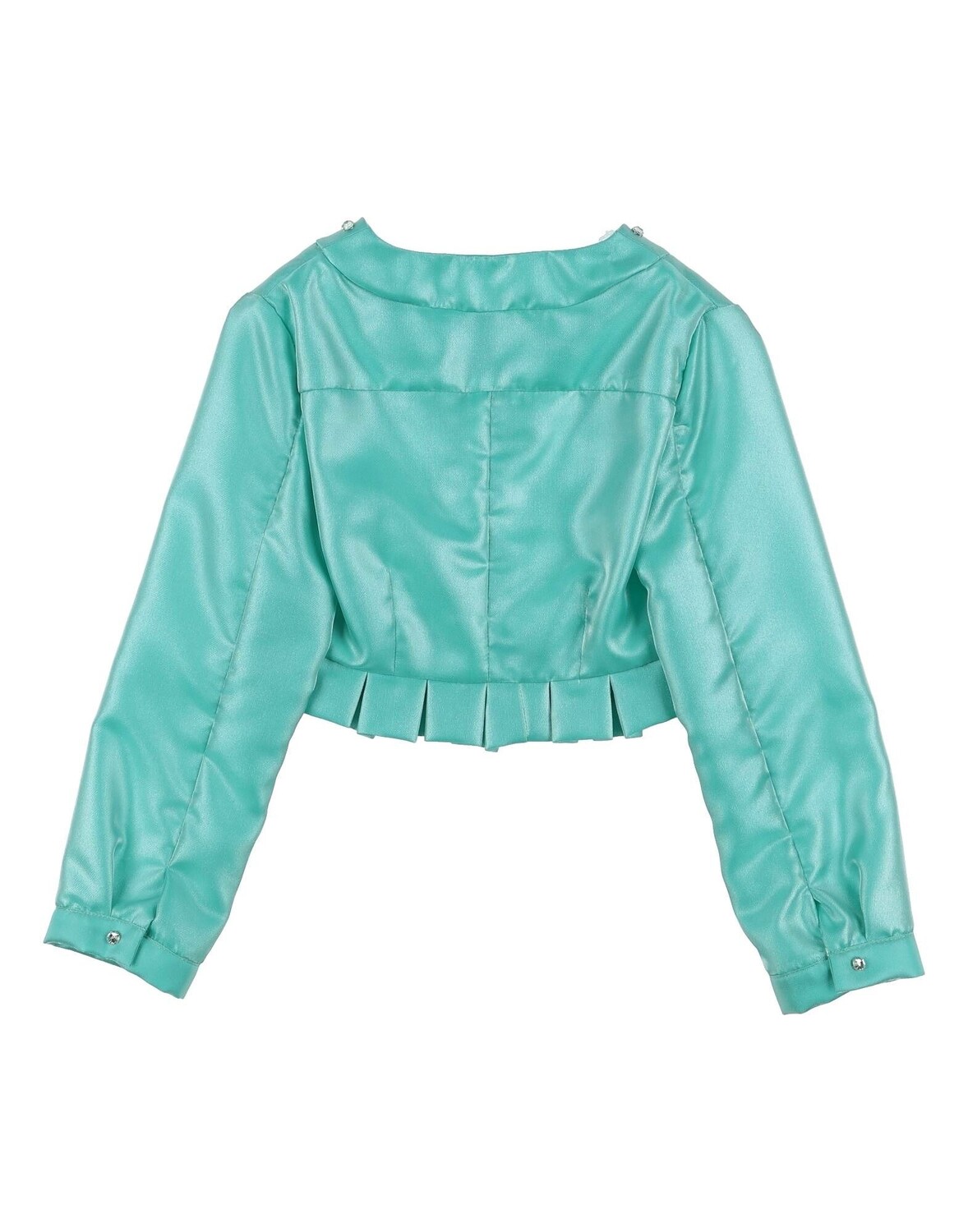 Полотняное переплетение, ламе, стразы, складки, одноцветное изделие, круглый воротник, однобортное, длинные рукава, без подкладки, застежка-молния, два нагрудных кармана, стирка при 30°C, химическая чистка, нельзя отбеливать, нельзя сушить в стиральной машине, гладить при температуре не более 110°C, однобортный пиджак