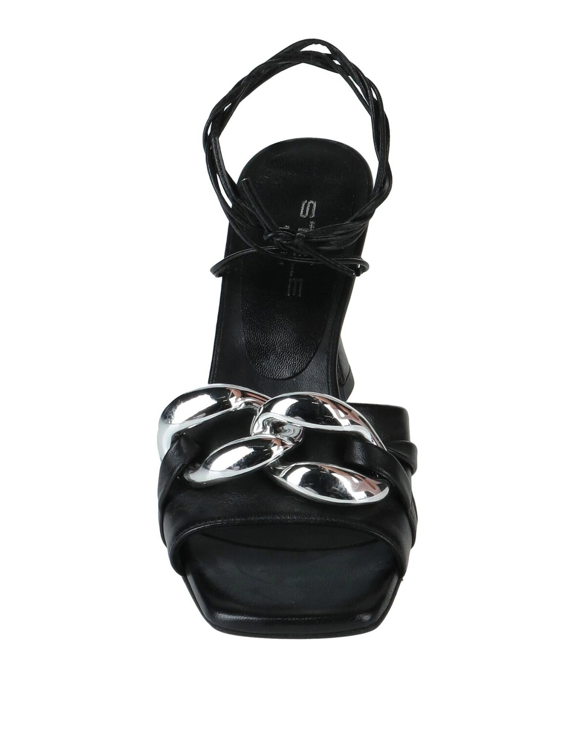 Кожа, кожа наппа, металлические аппликации, одноцветное изделие с аппликациями, подкладка из кожи, застежка-бретелька, квадратный носок, каблук- катушка, обтянутый каблук, резиновая подошва, содержит нетекстильные части животного происхождения, босоножки на шнуровке