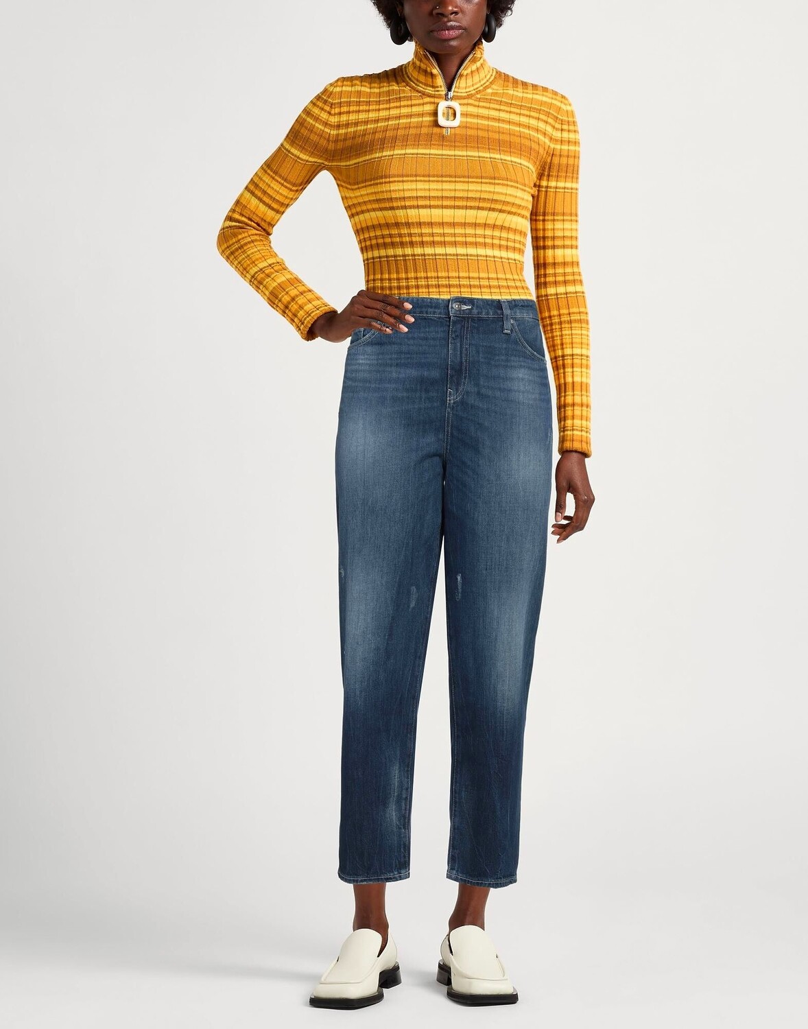 Джинсовая ткань, выцветший, логотип бренда, одноцветное изделие, средняя стирка, высокая талия, стандартный крой, 1 пуговица, застежка-молния, множество карманов, машинная стирка, нельзя отбеливать, нельзя сушить в стиральной машине, зауженные джинсы