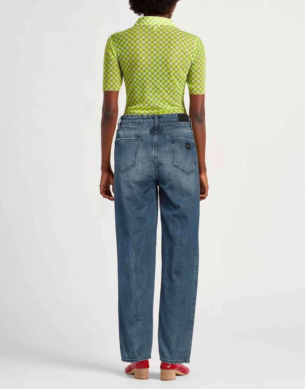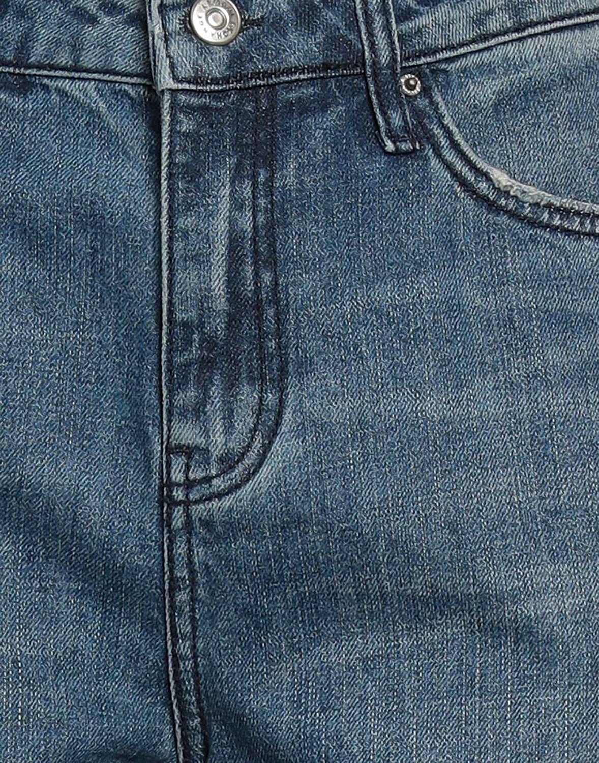 Зауженные джинсы, джинсовая ткань, потертые, выцветшие, одноцветное изделие, логотип бренда, кожаная отделка, средняя стирка, высокая талия, стандартная посадка, застежка-молния, 1 пуговица, множество карманов, машинная стирка, нельзя отбеливать, нельзя сушить в машине, содержит не- текстильные детали животного происхождения