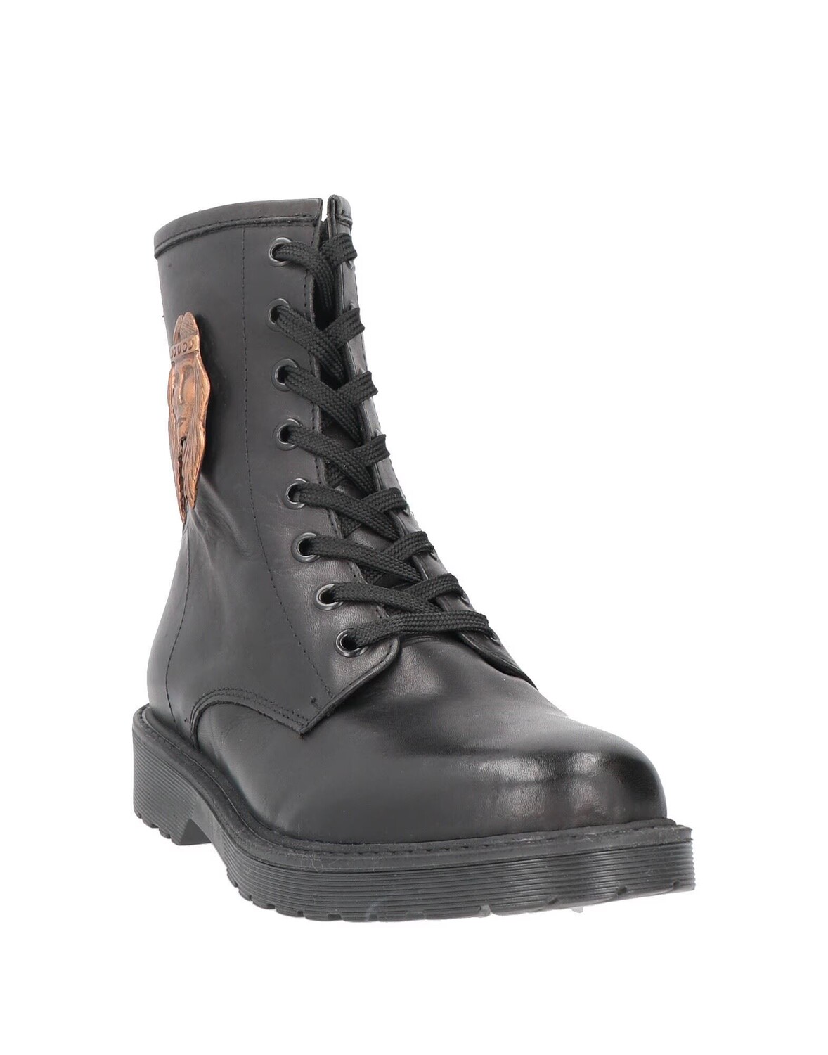 Кожа, металлические аппликации, одноцветное изделие с аппликациями, подкладка из кожи, шнуровка, застежка-молния, скругленный носок, квадратный каблук, резиновый каблук, подошва с выступами, содержит нетекстильные части животного происхождения, армейские ботинки
