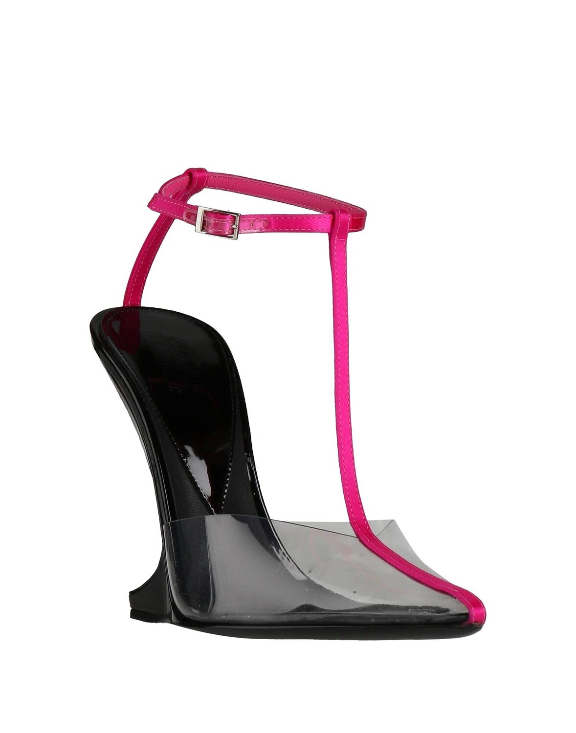 Сатин, пластик, без аппликаций, одноцветное изделие, внутри на подкладке, ремешок на щиколотке с пряжкой, круглый носок, каблук-танкетка, кожаная подошва, содержит нетекстильные части животного происхождения, Т-образная планка