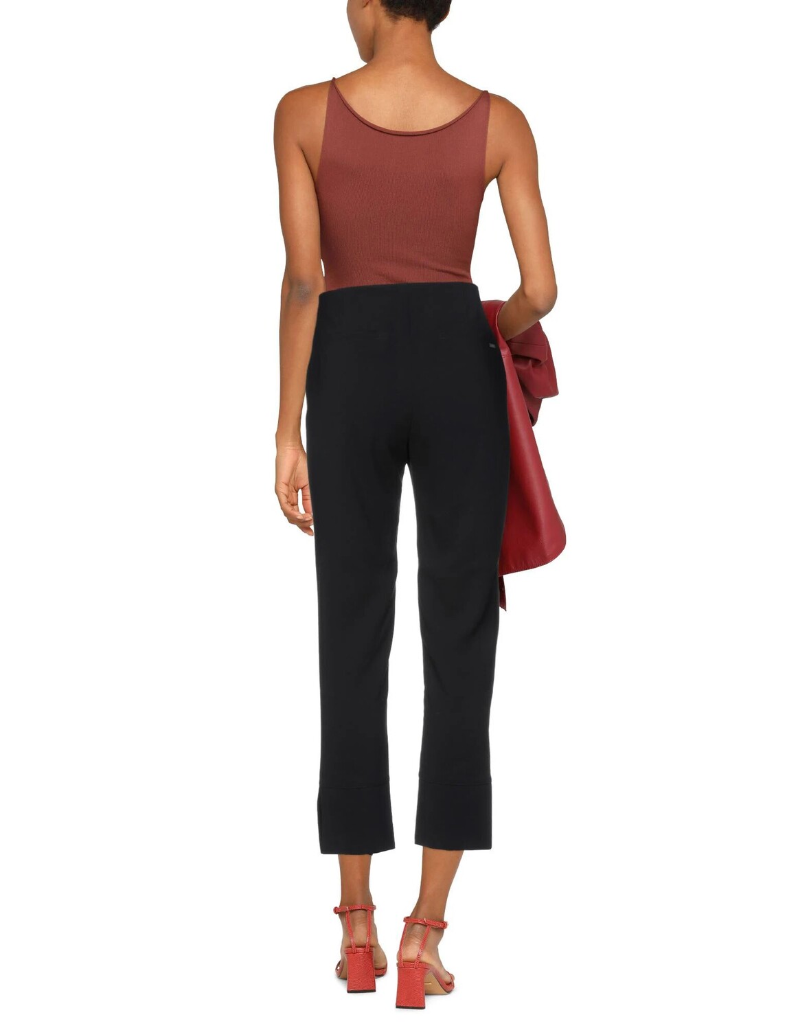 Креп, логотип бренда, одноцветное изделие, застежка на кнопки, застежка-молния, завышенная талия, стандартный крой, зауженная брючина, множество карманов