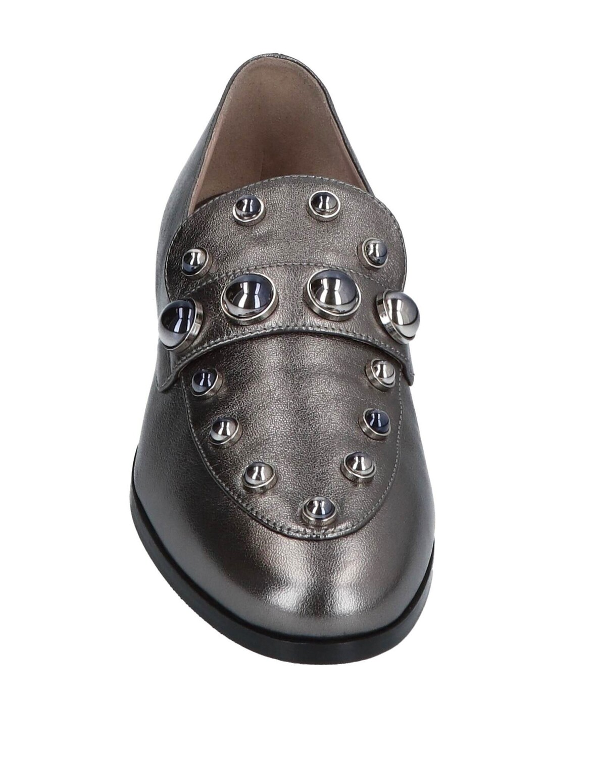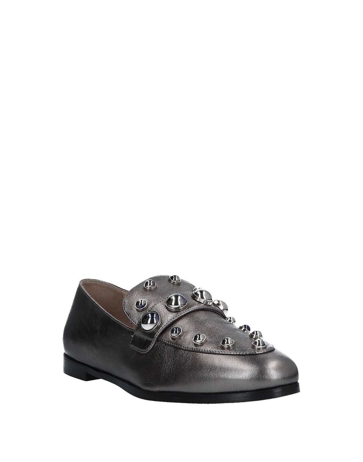 Кожа, кожа наппа, металлик, заклепки, одноцветное изделие с аппликациями, подкладка из кожи, скругленный носок, без каблука, подошва из кожи/резины, содержит нетекстильные части животного происхождения