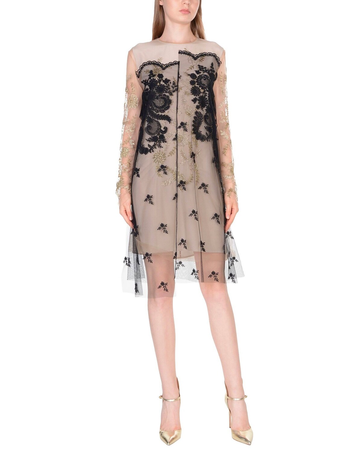 Тюль, вышивка, бисер, двухцветный, круглый воротник, длинные рукава, без карманов, внутри на подкладке, застежка сзади, пуговицы, содержит нетекстильные части животного происхождения, платье