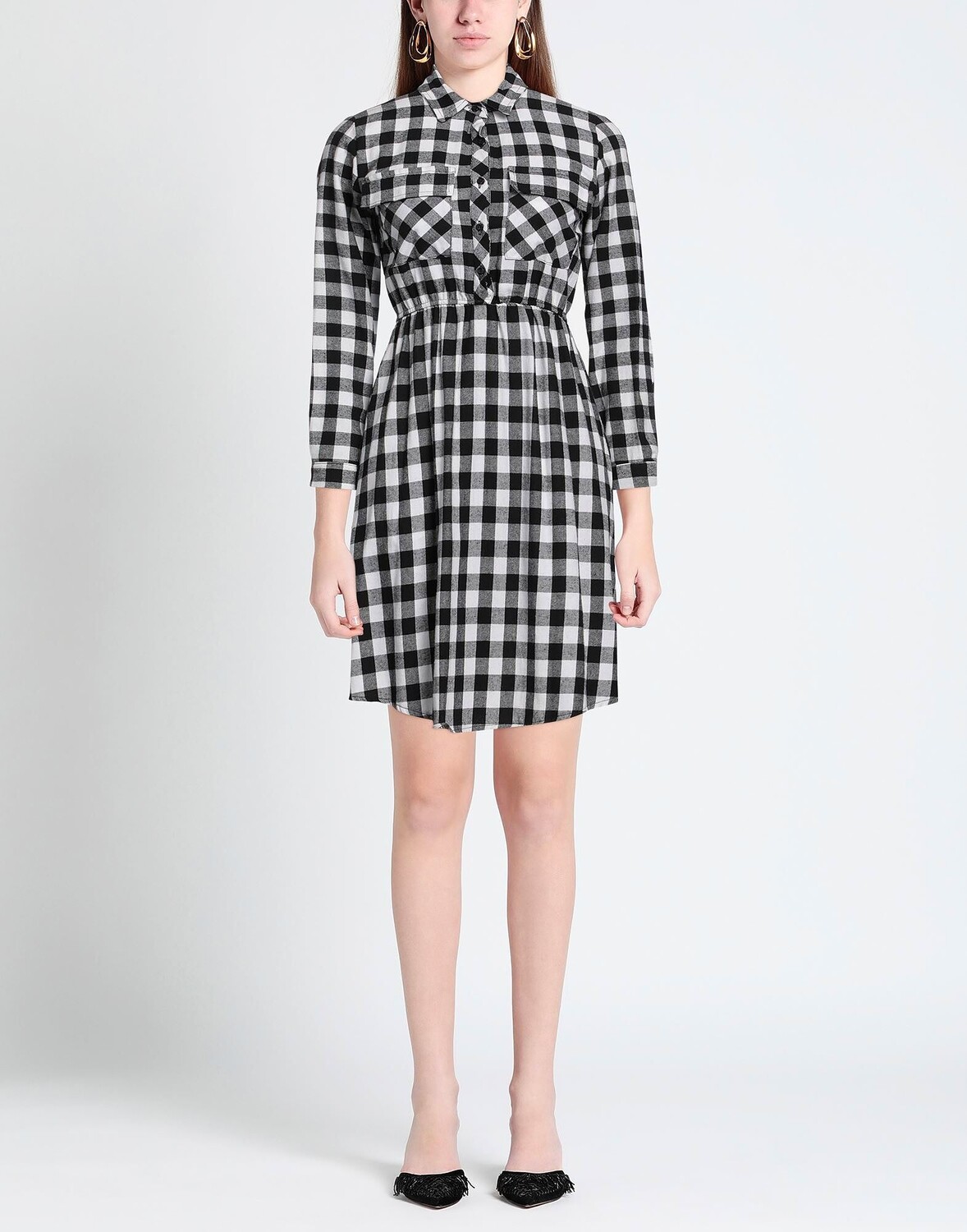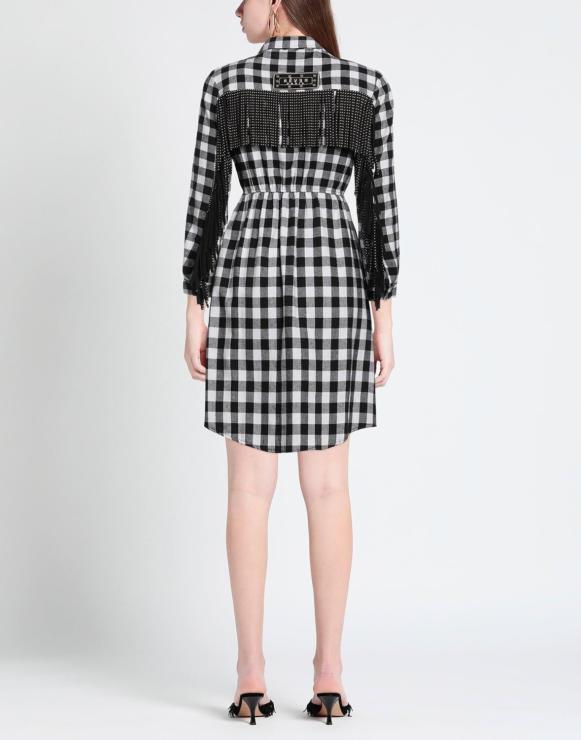 Фланель, бахрома, клетка, классический воротник, длинные рукава, без подкладки, пуговицы, два нагрудных кармана, платье-рубашка
