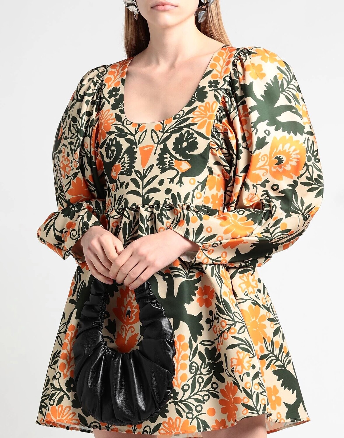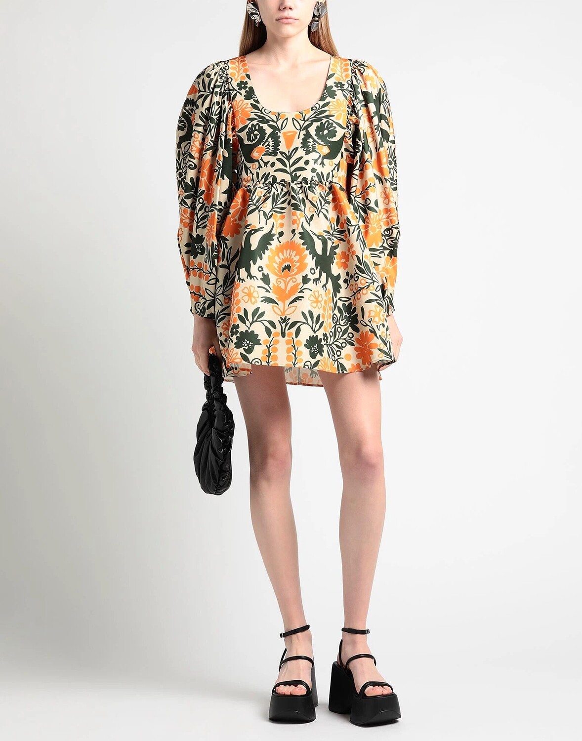 Ракушка, без аппликаций, цветочный принт, овальный вырез, длинные рукава, без подкладки, застежка-молния, множество карманов, машинная стирка или химчистка, нельзя отбеливать, нельзя сушить в стиральной машине, расклешенное платье