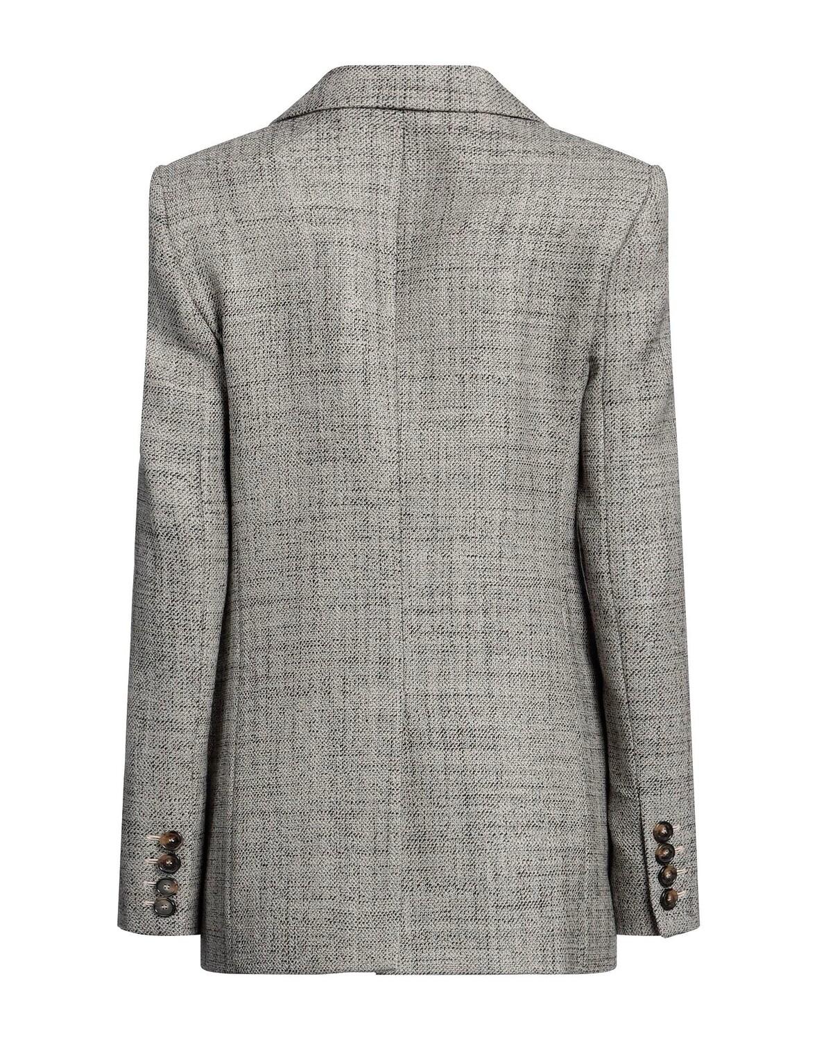 Твид, без аппликаций, двухцветное, воротник с лацканами, однобортное, длинные рукава, подплечники, полностью на подкладке, 1 пуговица, множество карманов, разрез сзади, изделие содержит шерсть с ферм, где ценят благополучие животных., химчистка, не отбеливать, не сушить в стиральной машине, однобортный пиджак