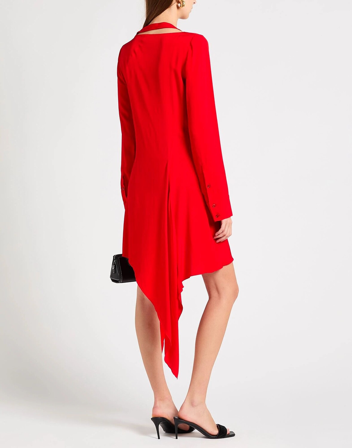 Кади, без аппликаций, одноцветное изделие, овальный вырез, длинные рукава, без подкладки, застежка на пуговицах, без карманов, асимметричный подол, содержит нетекстильные части животного происхождения, химчистка, не отбеливать, нельзя сушить в стиральной машине, платье-рубашка