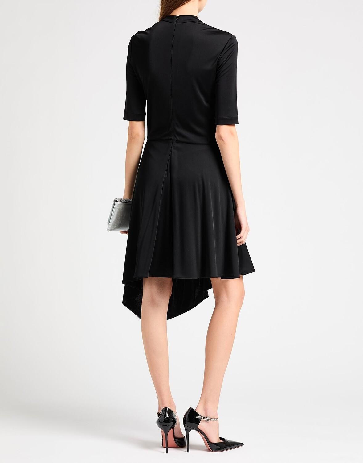 Платье асимметричное, трикотаж, без аппликаций, одноцветное изделие, круглый вырез, короткие рукава, без подкладки, застежка-молния, без карманов, химчистка, нельзя отбеливать, нельзя сушить в стиральной машине