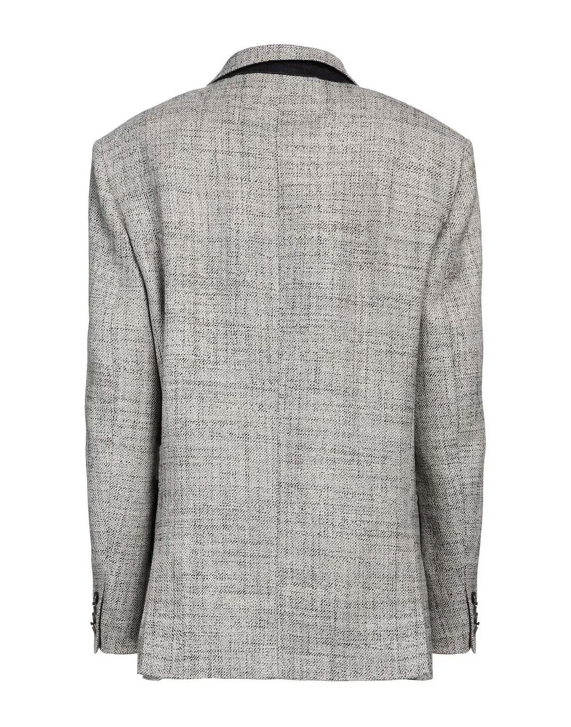 Твид, без аппликаций, двухцветное, воротник с лацканами, двубортный, длинные рукава, подплечники, полностью на подкладке, застежка на пуговицы, множество карманов, двойные шлицы сзади, изделие изготовлено из шерсти с ферм, где ценят благополучие животных., химчистка , не отбеливать, не сушить в стиральной машине, двубортный пиджак