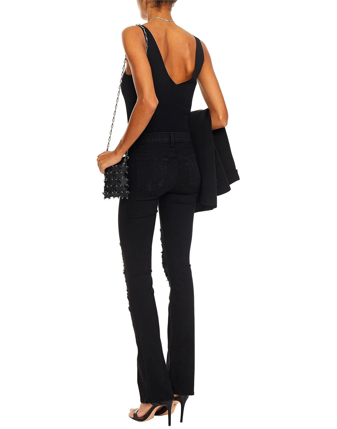 Джинсовая ткань, эффект потертости, без аппликаций, одноцветное изделие, цветная расцветка, шлевки для ремня, стандартный крой, застежка-молния, 1 пуговица, пять карманов, модель «ботинок»