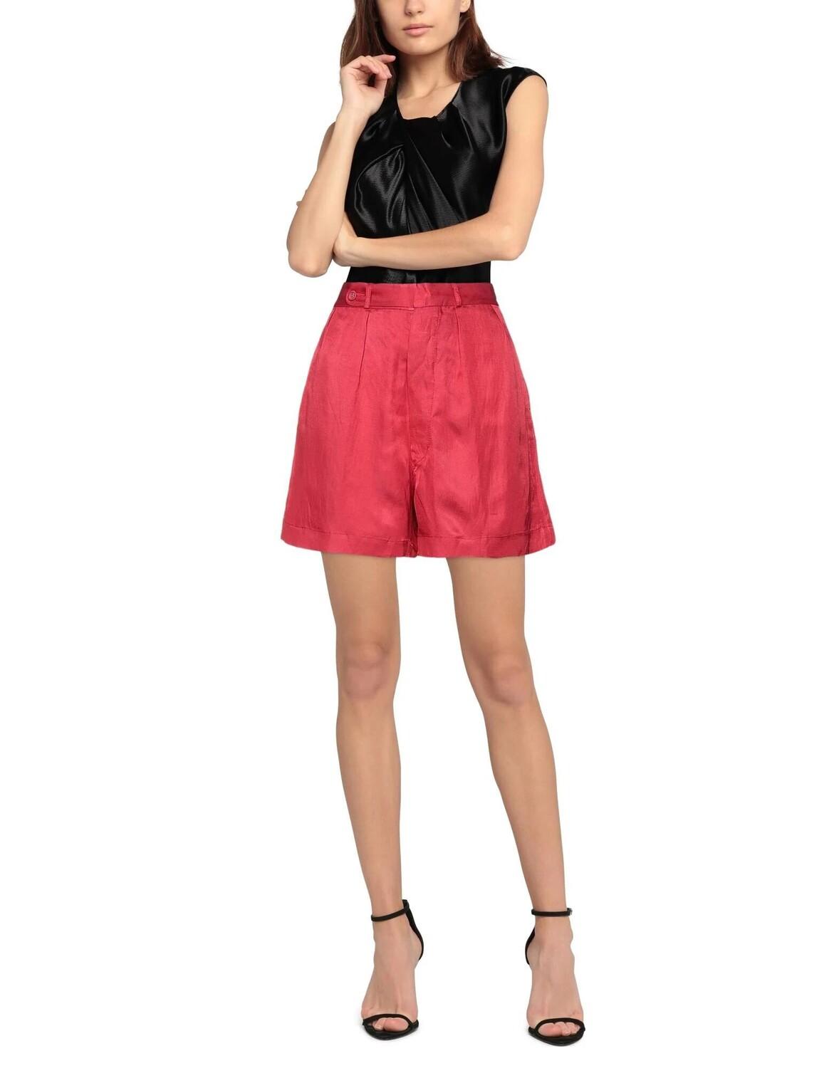 Шантунг, вытачки, логотип бренда, одноцветное изделие, завышенная талия, стандартный крой, застежка на пуговицы, множество карманов, размер этой марки, шорты