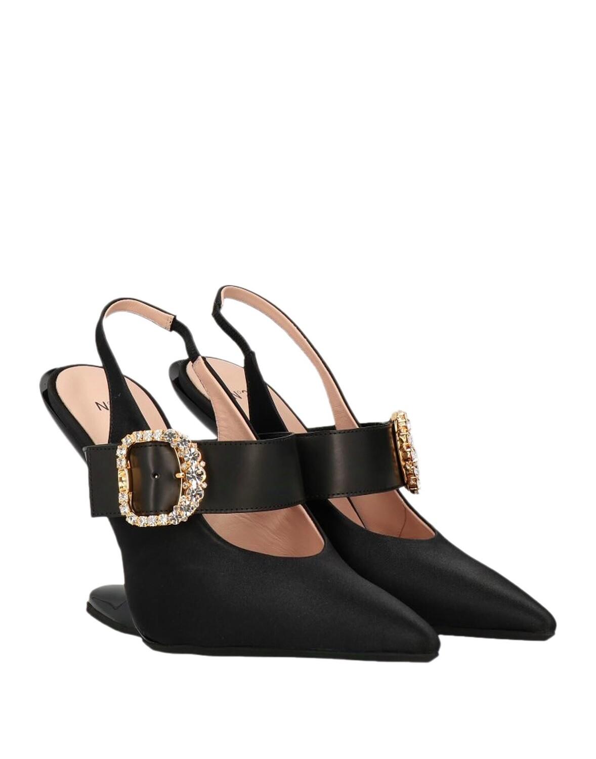 Сатин, кожа, кристаллы, пряжка, одноцветное изделие с аппликациями, внутри кожаная подкладка, острый носок, геометрический каблук, резиновая подошва, содержит нетекстильные части животного происхождения, туфли-лодочки, маленький размер
