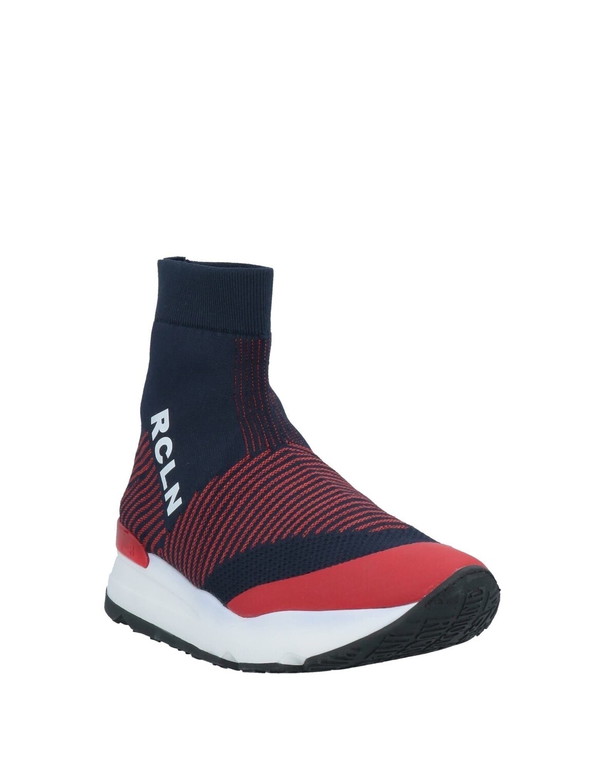 Трикотажное изделие, логотип, двухцветное изображение, скругленный носок, каблук-танкетка, внутри кожа, резиновая подошва, содержит нетекстильные части животного происхождения