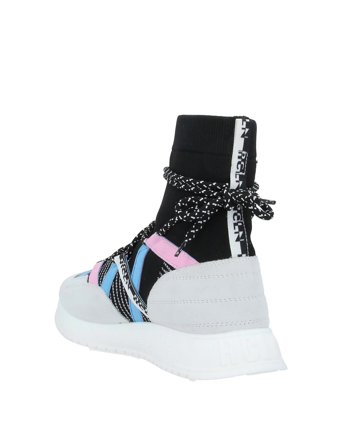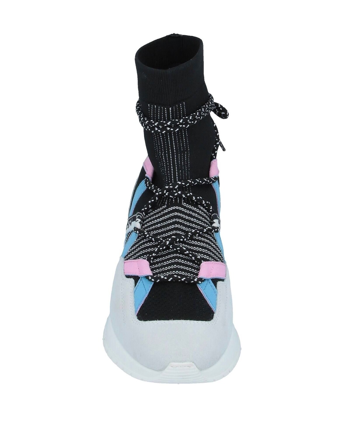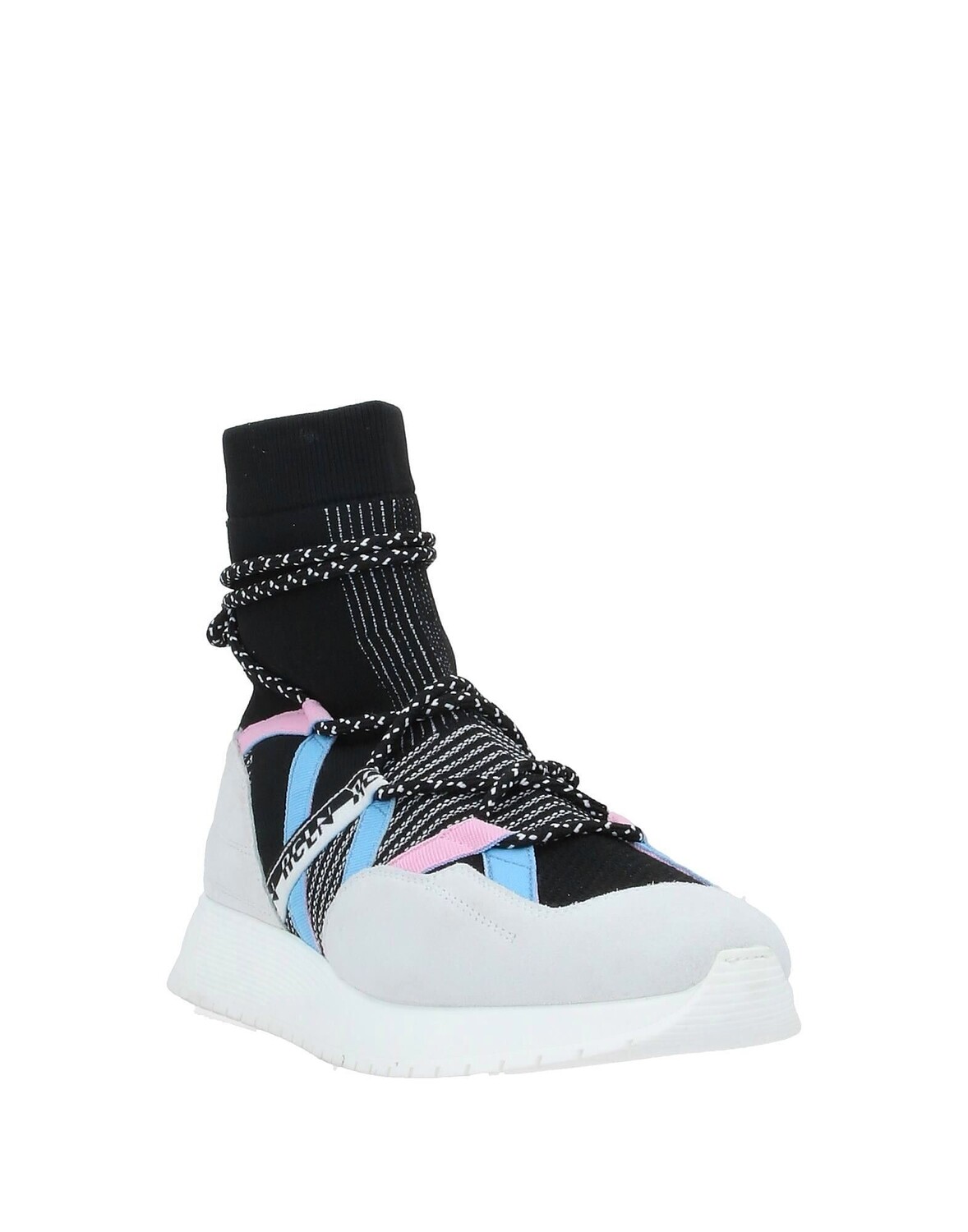 Кожа, трикотаж, эффект замши, логотип, разноцветный узор, шнуровка, скругленный носок, танкетка, внутри кожа, резиновая подошва с тиснением, содержит нетекстильные части животного происхождения