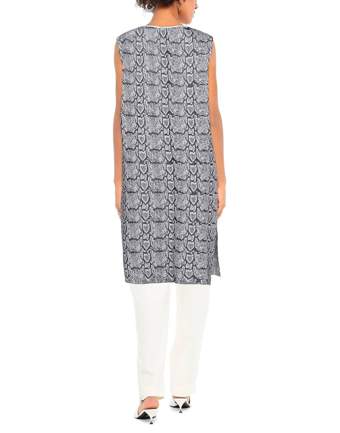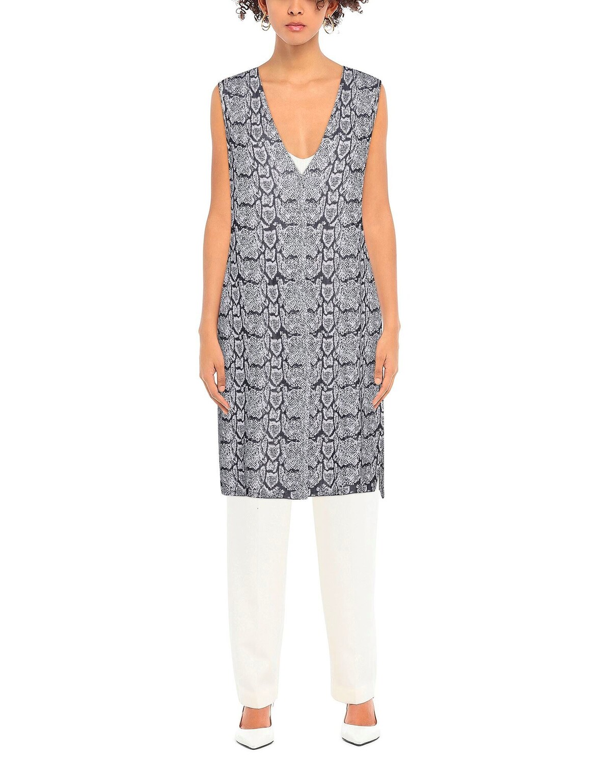 Жаккард, трикотаж, легкая вязка, без аппликаций, разноцветный узор, v-образный вырез, без рукавов, застежка на кнопки, без карманов