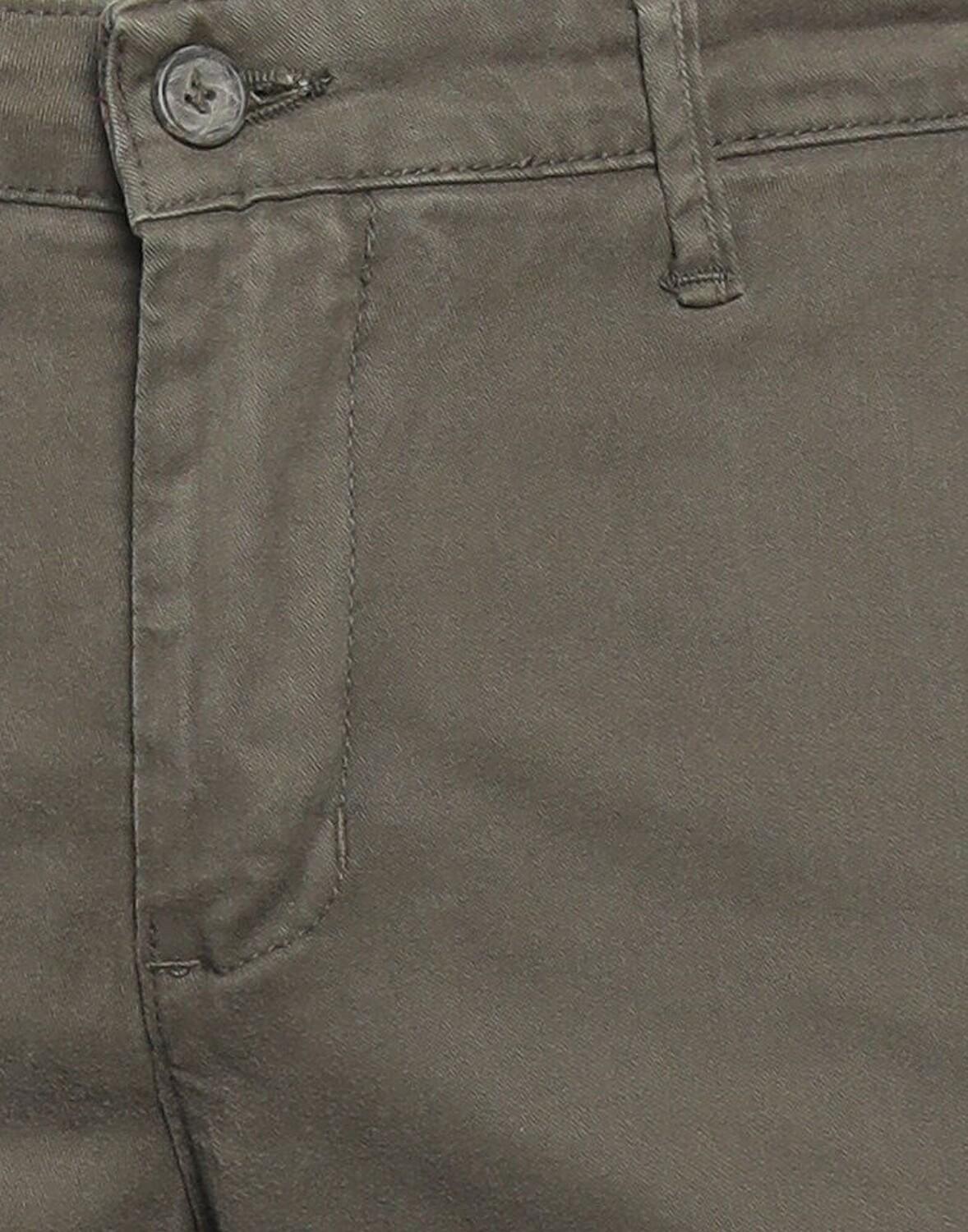 Саржа, одноцветное изделие, логотип бренда, средняя посадка, стандартный крой, зауженная брючина, 1 пуговица, множество карманов, стрейч