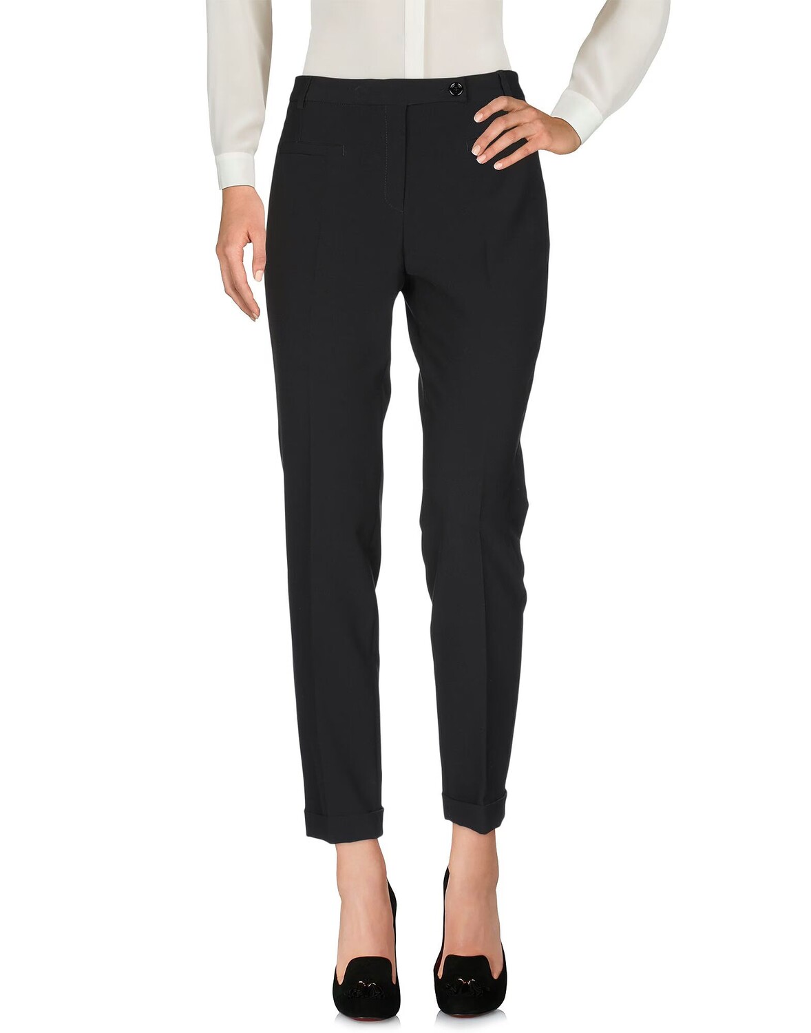 Креп, без аппликаций, одноцветное изделие, завышенная талия, стандартный крой, подвернутый низ, множество карманов, стрейч, брюки этой марки небольшого размера, зауженные брюки