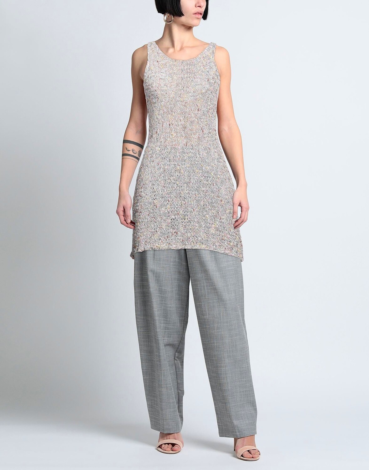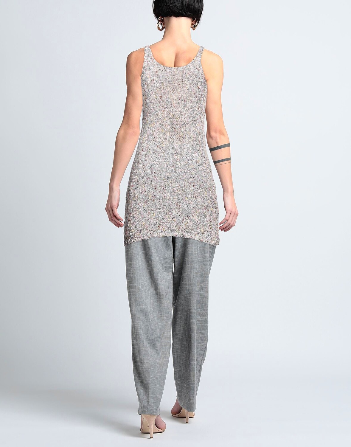 Трикотаж, легкая вязка, без аппликаций, разноцветный, вырез «лодочка», без рукавов, без карманов, топ