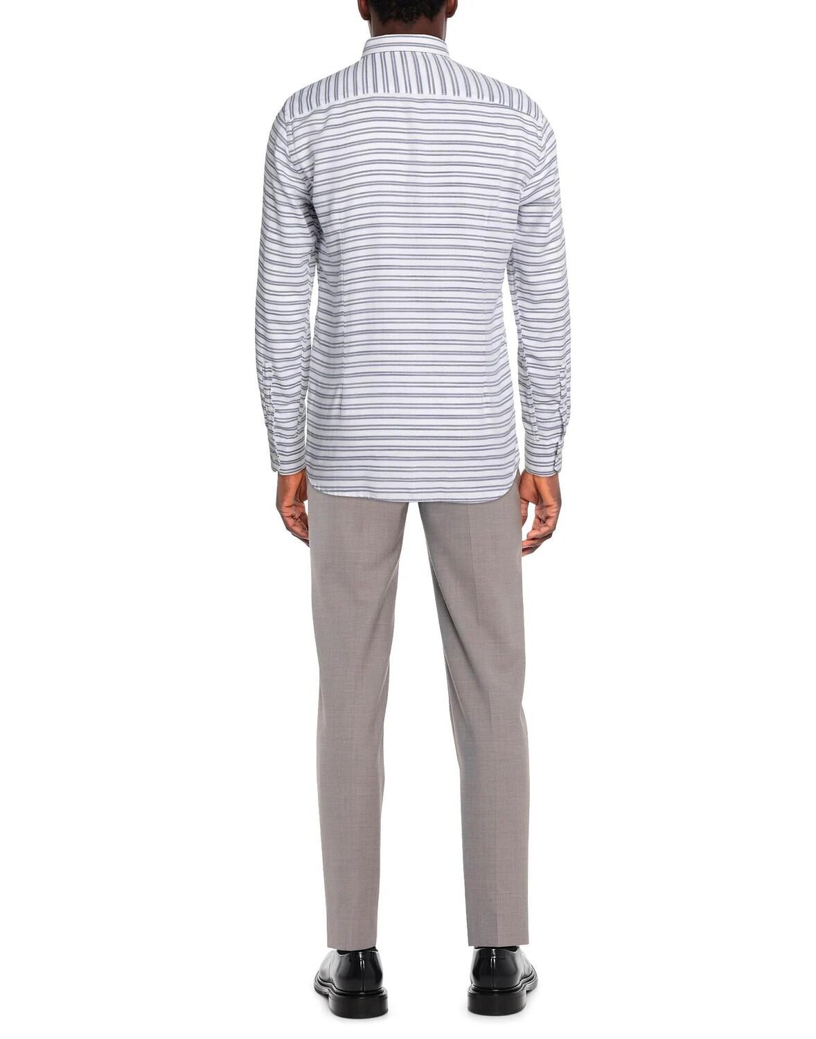 Полотняное плетение, без аппликаций, в полоску, классический вырез горловины, длинные рукава, пуговицы, без карманов, манжеты на пуговицах
