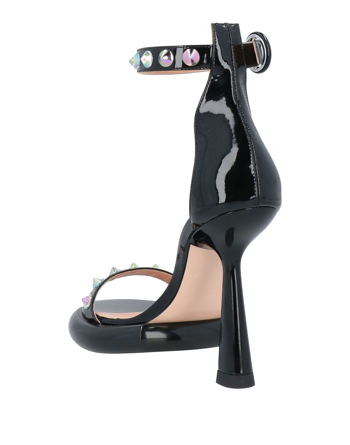 Босоножки с ремешком на щиколотке, лакированная кожа, одноцветное изделие с аппликациями, заклепки, подкладка из кожи, ремешок на щиколотке с пряжкой, круглый носок, каблук-катушка, обтянутый каблук, кожаная подошва, содержат нетекстильные части животного происхождения