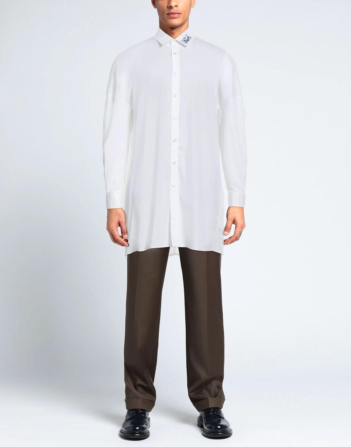 Тканое, с вышивкой, однотонное с аппликациями, классический воротник, длинные рукава, манжеты на пуговицах, застежка на пуговицы, без карманов, машинная стирка или химчистка, не отбеливать, сушить в стиральной машине, длинная рубашка