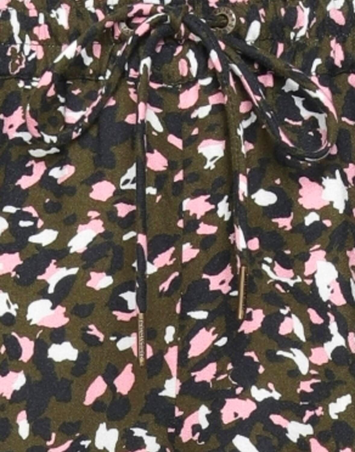 Брюки прямого кроя, креп, леопардовый принт, полоски по бокам, средняя посадка, талия на кулиске, стандартный крой, множество карманов
