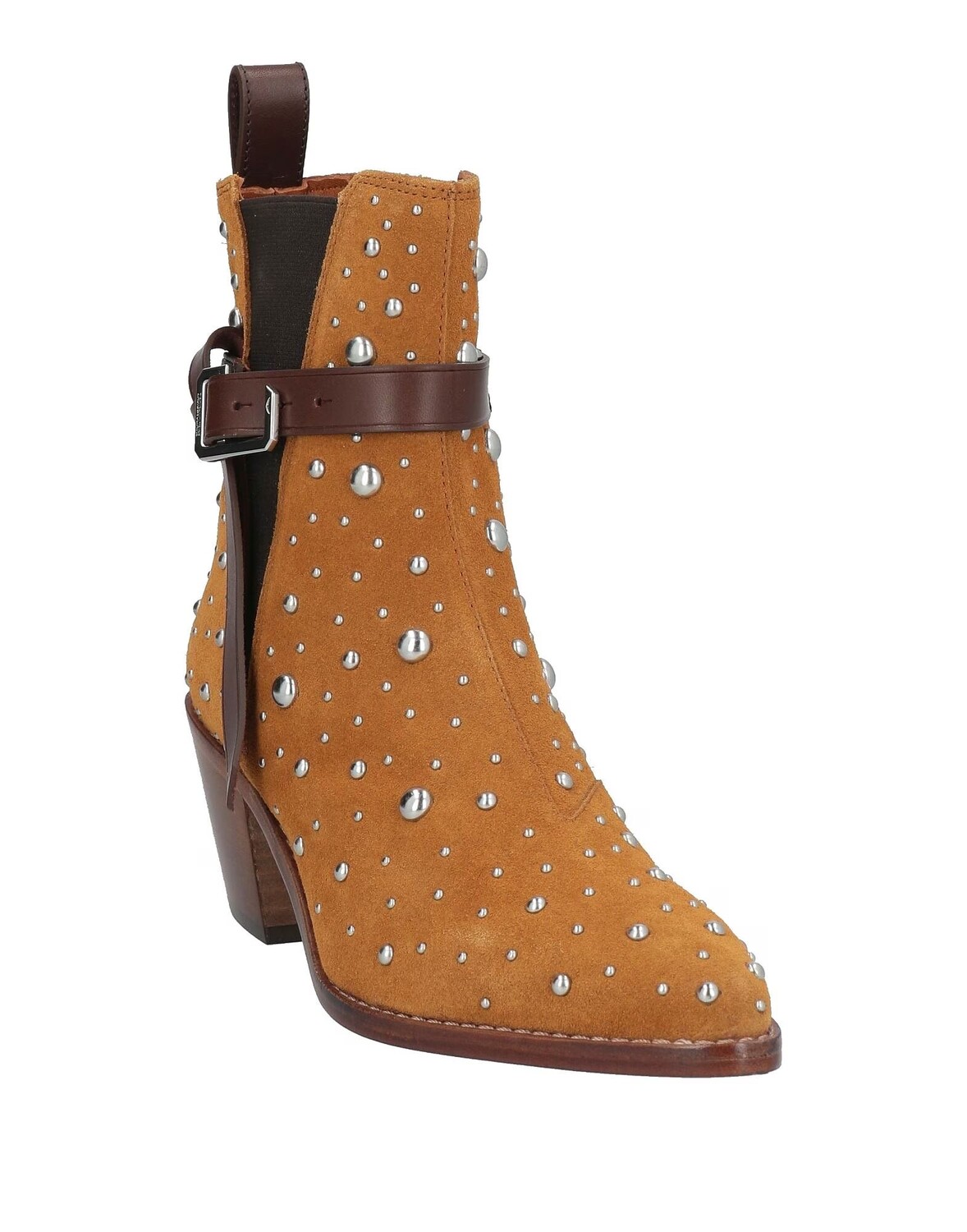 Ковбойские ботильоны, замша, одноцветное изделие с аппликациями, пряжка, заклепки, подкладка кожа, заостренный носок, кубинский каблук, кожаная подошва, содержит нетекстильные части животного происхождения