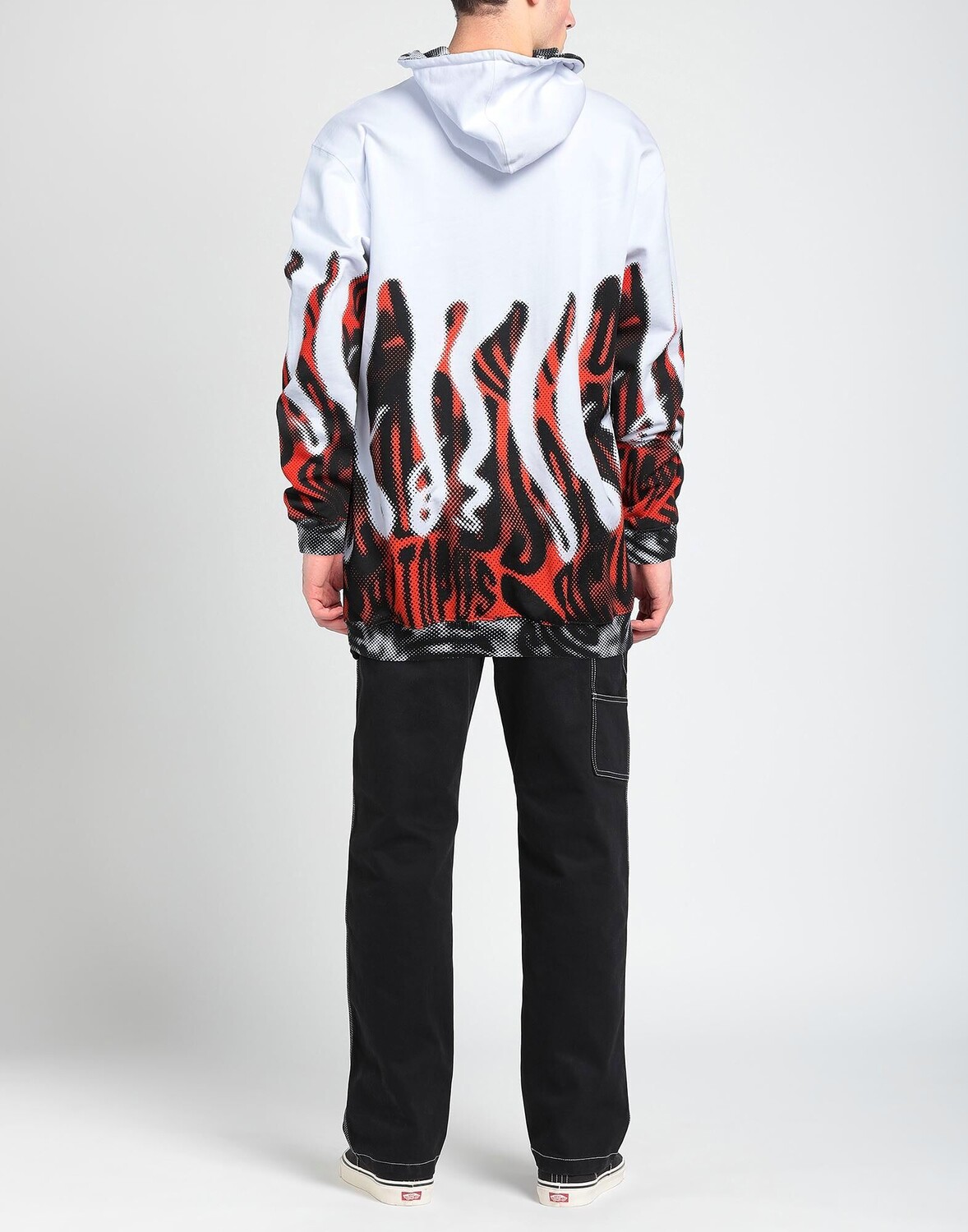 Толстовка из флиса, логотип бренда, разноцветный узор, воротник с капюшоном, длинные рукава, манжеты в рубчик, подкладка из французского махра, без карманов