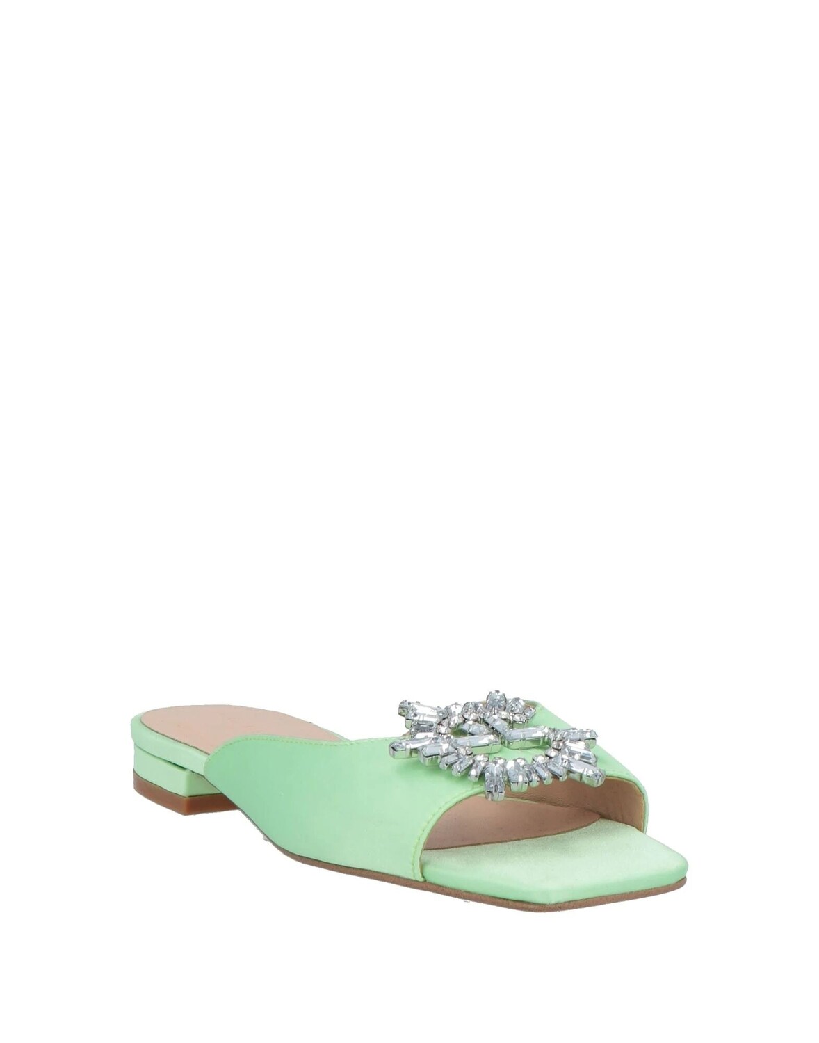 Атлас, стразы, логотип бренда, одноцветное изделие с аппликациями, подкладка из кожи, квадратный носок, без каблука, резиновая подошва, содержит нетекстильные части животного происхождения, шлепанцы