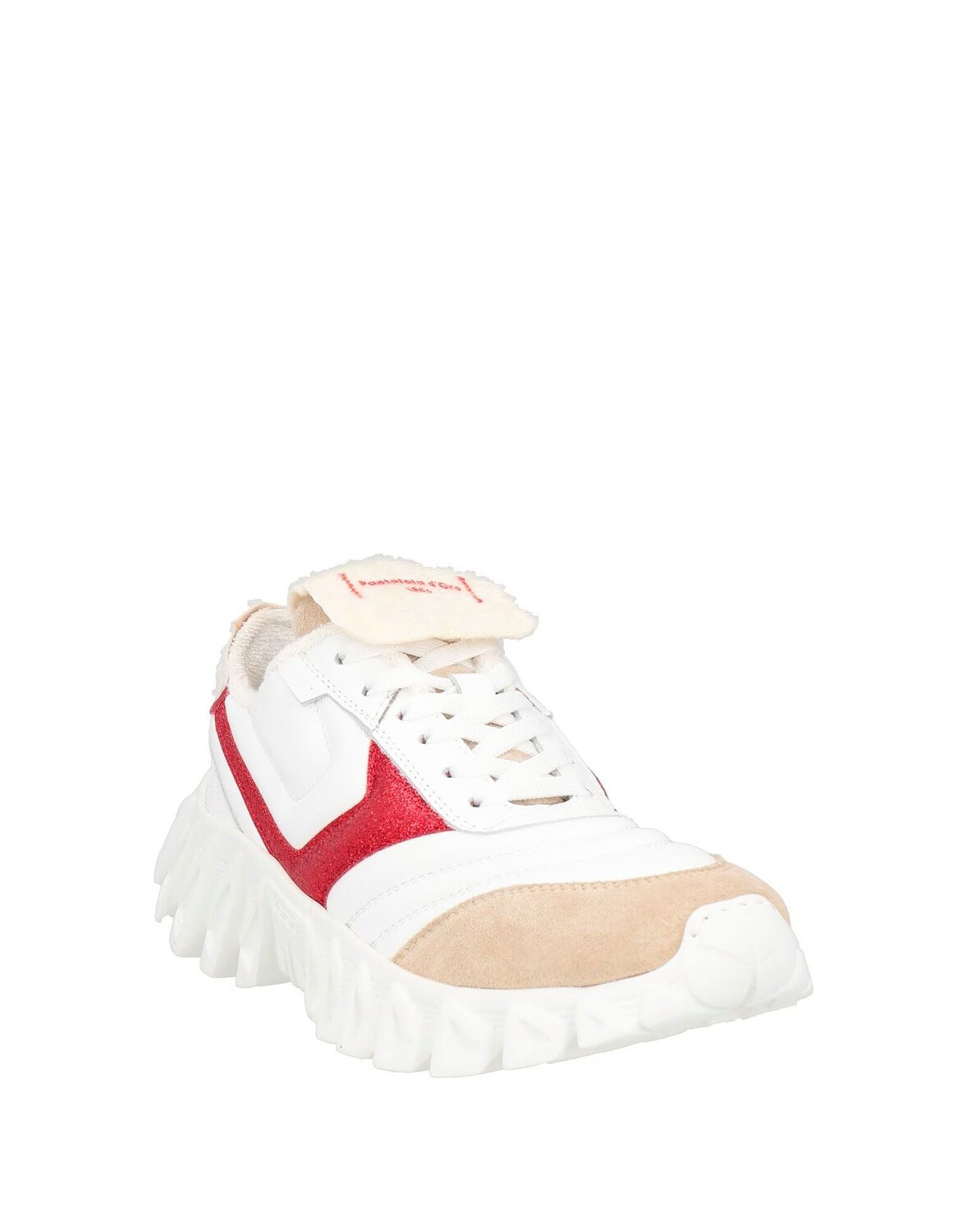 Кожа, эффект замши, блестки, логотип бренда, разноцветный рисунок, внутри на подкладке, шнуровка, скругленный носок, без каблука, подошва с выступами, содержит нетекстильные части животного происхождения, низкие кеды и кроссовки