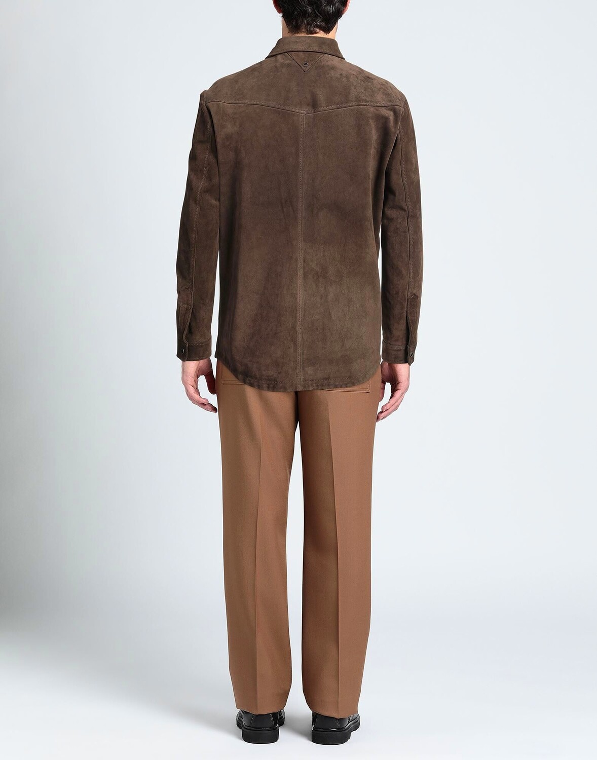 Кожа, эффект замши, без аппликаций, одноцветное изделие, классический воротник, длинные рукава, внутри на подкладке, застежка на кнопки, множество карманов, содержит нетекстильные части животного происхождения
