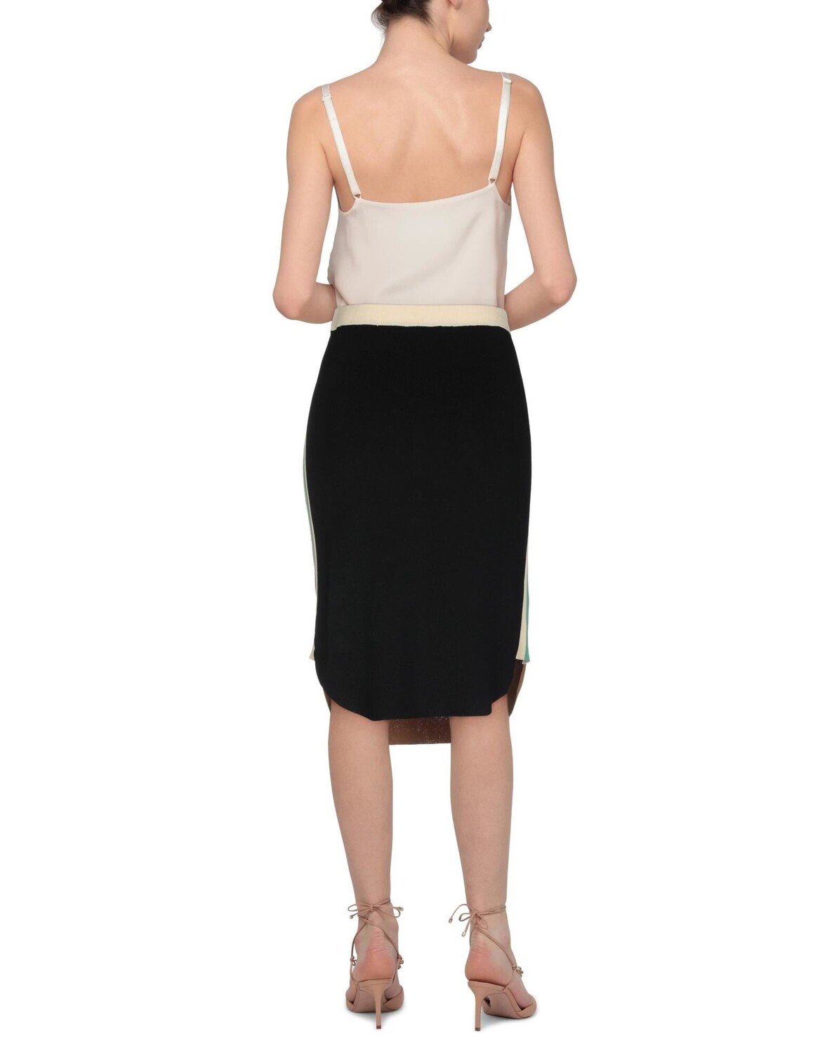 Трикотажное полотно, полоски по бокам, разноцветный узор, средняя посадка, талия на резинке, без карманов, без подкладки, низ с боковым разрезом, стрейч
