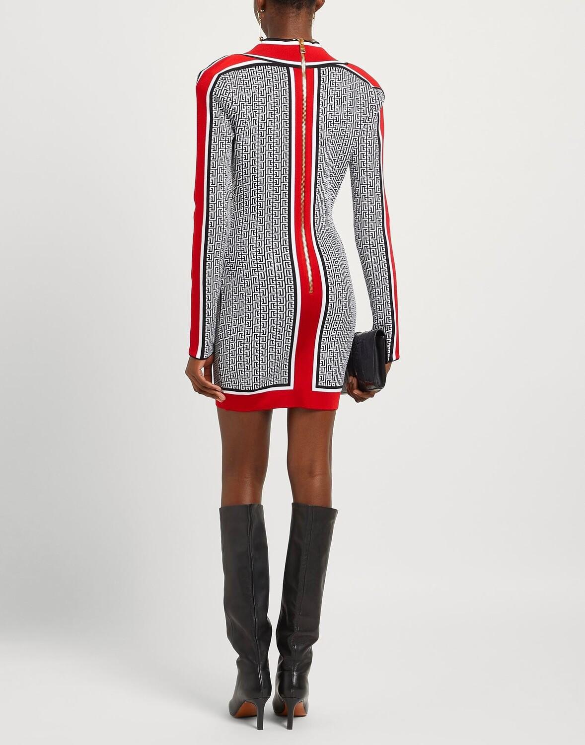 Трикотаж, легкая вязка, логотип бренда, разноцветное, v-образный вырез, длинные рукава, без подкладки, застежка-молния, без карманов, химчистка, нельзя сушить в стиральной машине, не отбеливать, облегающее платье