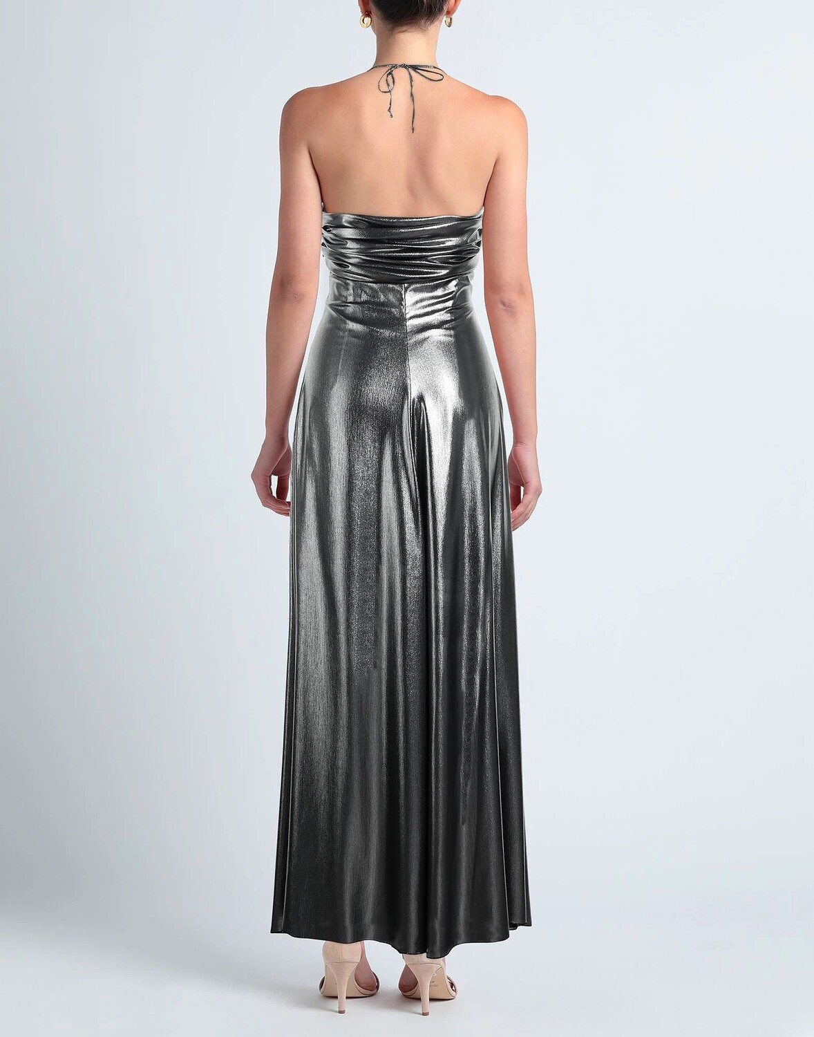 Креп, присборки, одноцветное изделие, V-образный вырез, без рукавов, на подкладке, застежка-молния, без карманов, расклешенное платье