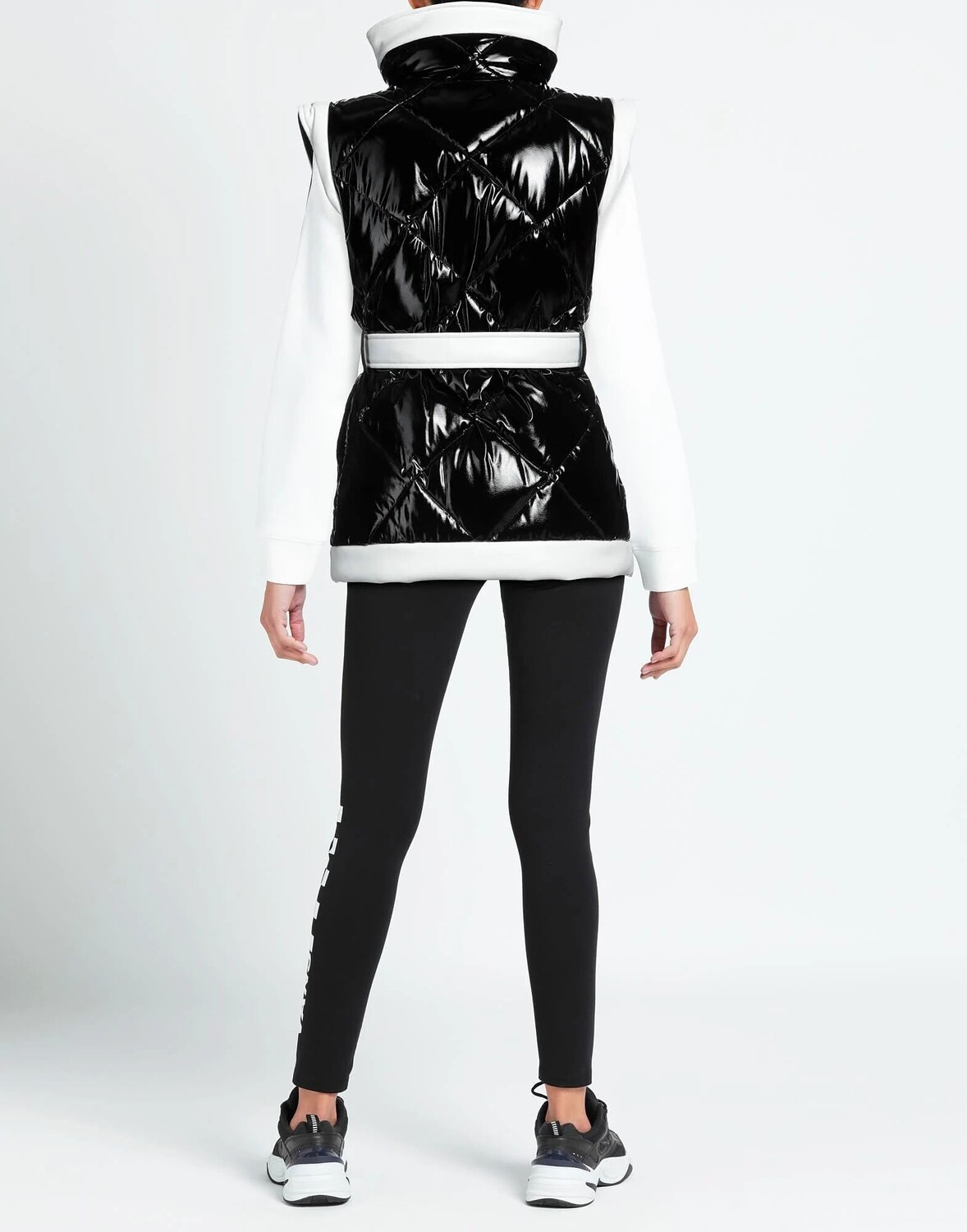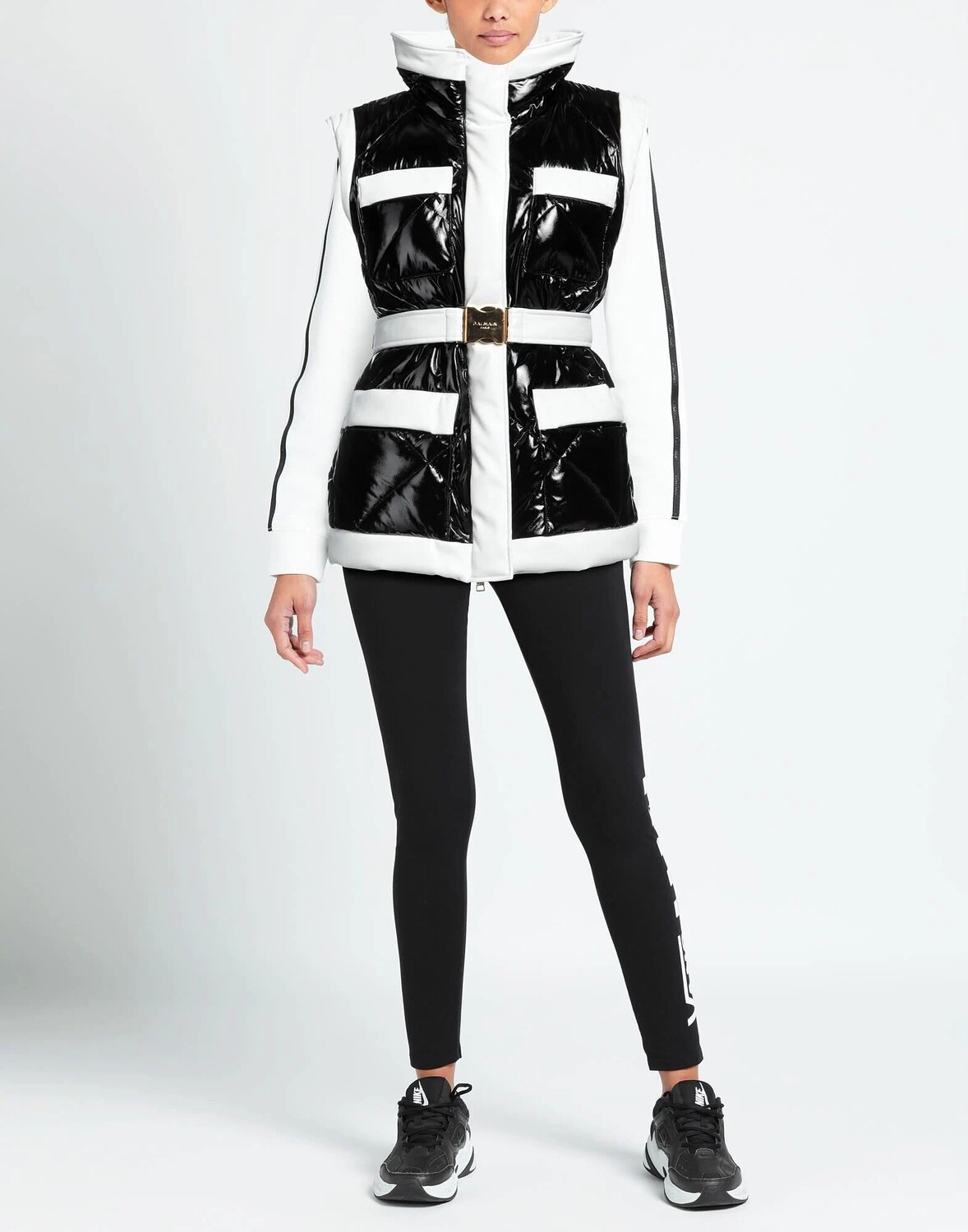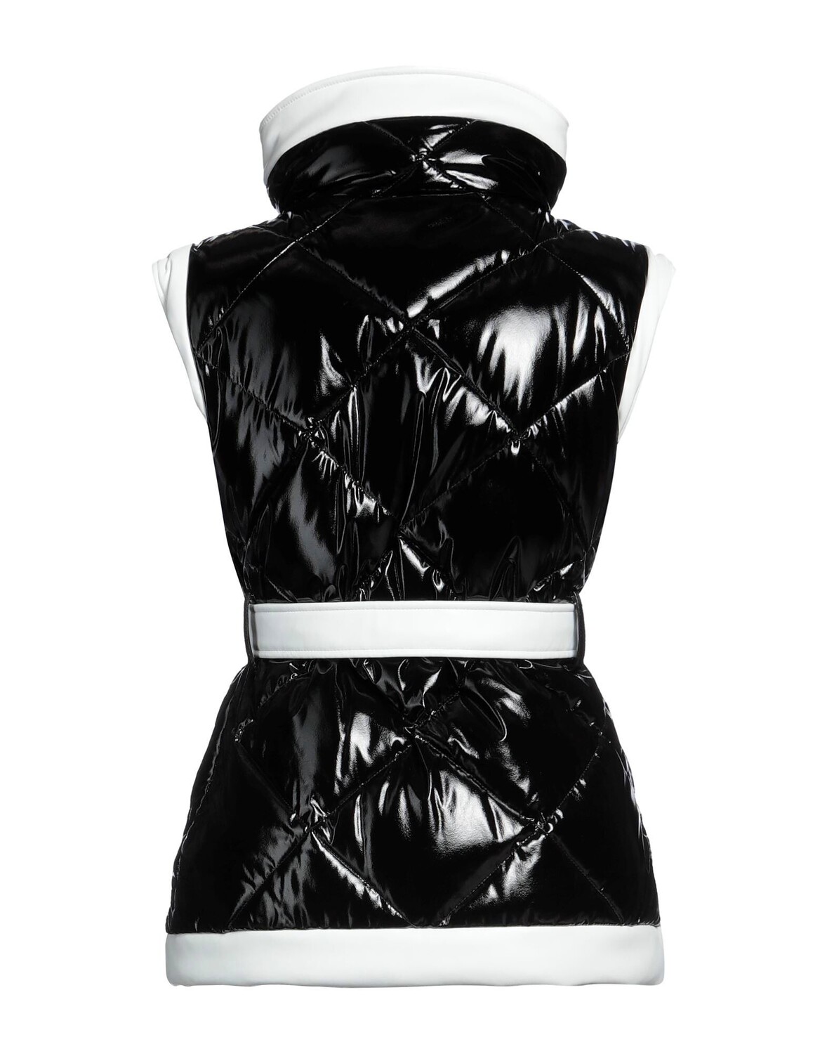 Техно ткань, ткань с покрытием, стеганая, эффект лака, ремень, двухцветный, воротник-стойка, однобортный, без рукавов, внутренняя набивка, застежка-молния, застежка на кнопки, шлевки для ремня, множество карманов, карман на молнии, однобортный пиджак