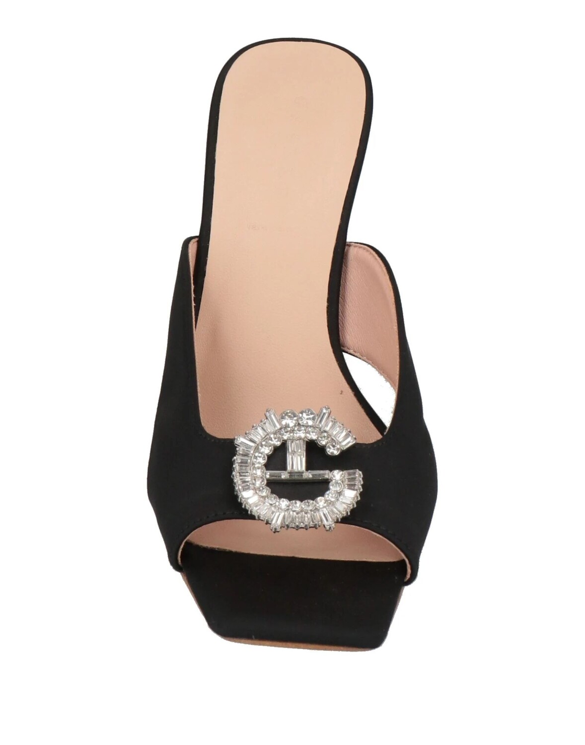 Босоножки, атлас, одноцветное изделие с аппликациями, кристаллы, логотип бренда, подкладка из кожи, квадратный носок, конический каблук, резиновая подошва, содержит нетекстильные части животного происхождения