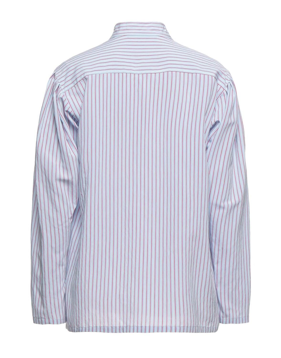 Полотняное переплетение, без аппликаций, в полоску, застежка спереди, пуговицы, длинные рукава, манжеты на пуговицах, воротник-стойка, без карманов