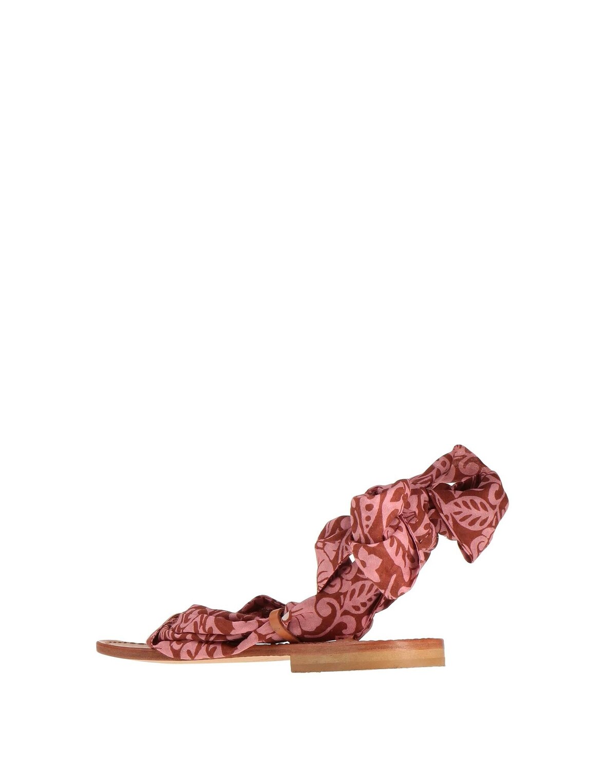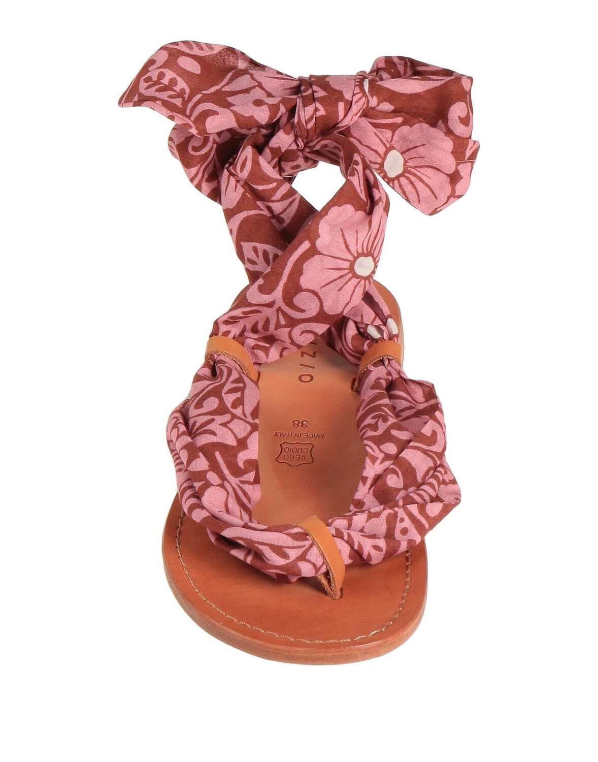 Полотняное переплетение, без аппликаций, цветочный дизайн, кожаная подкладка, скругленный носок, без каблука, кожаная подошва, содержит нетекстильные части животного происхождения, босоножки со шнуровкой