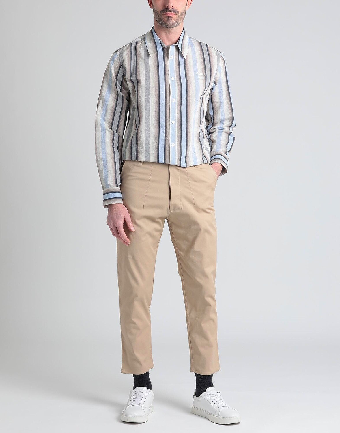 Саржа, логотип бренда, одноцветное изделие, завышенная талия, шлевки для ремня, зауженные брючины, узкие брюки, потайные пуговицы, множество карманов, стрейч, брюки чинос