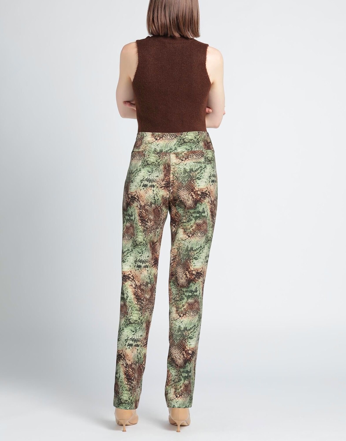 Креп, логотип бренда, крокодиловый принт, разноцветный, завышенная талия, зауженные брючины, классический крой, застежка на пряжке, без карманов, стрейч, брюки