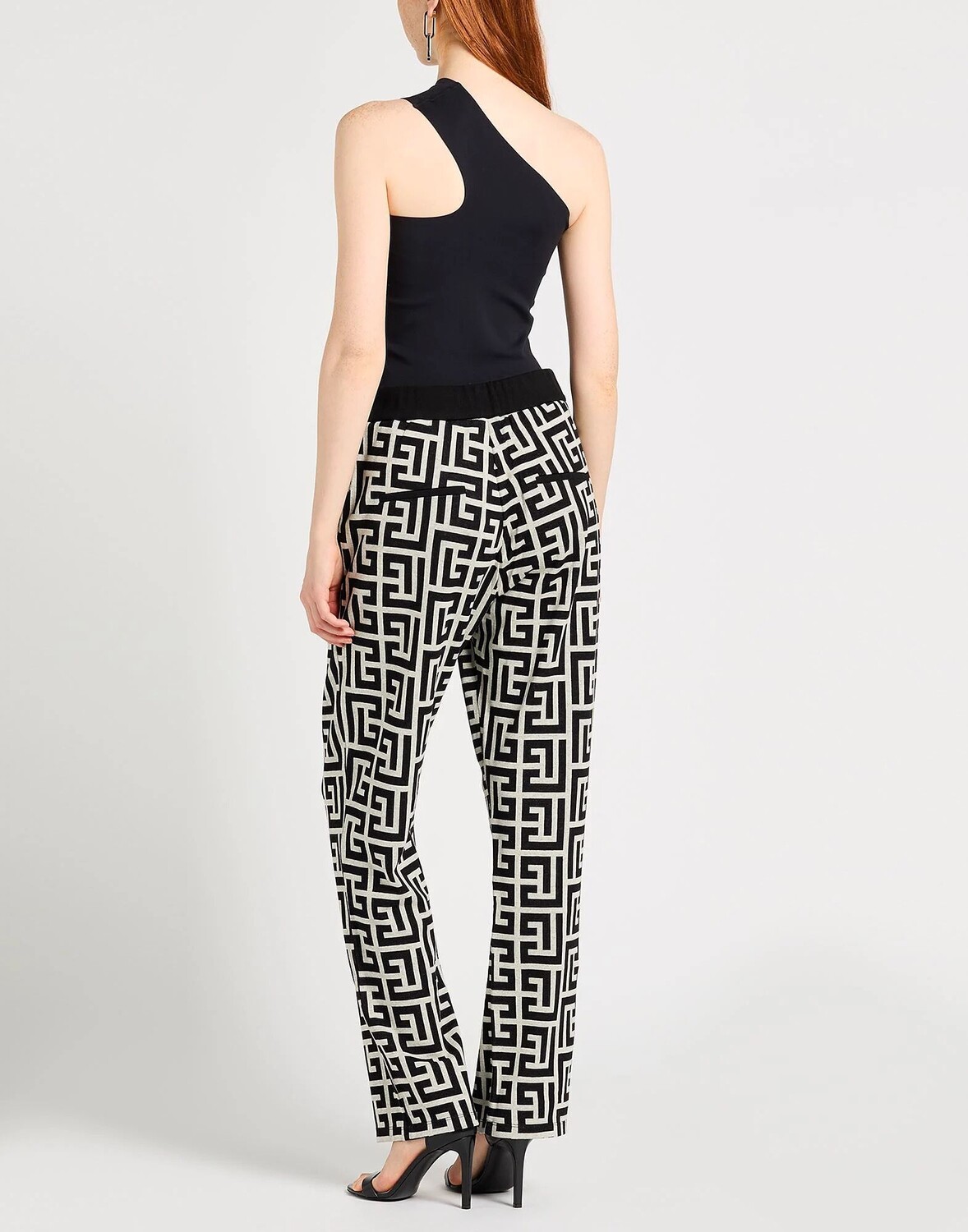 Трикотаж, легкий трикотаж, логотип бренда, принт с логотипом, завышенная талия, талия на кулиске, свободный крой, машинная стирка или химчистка, нельзя отбеливать, нельзя сушить в стиральной машине, спортивные брюки