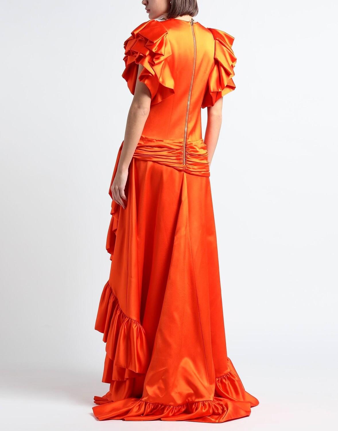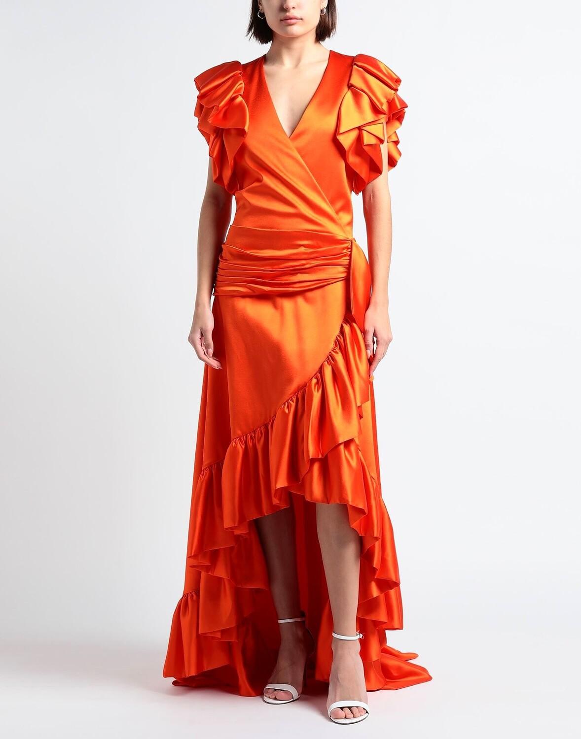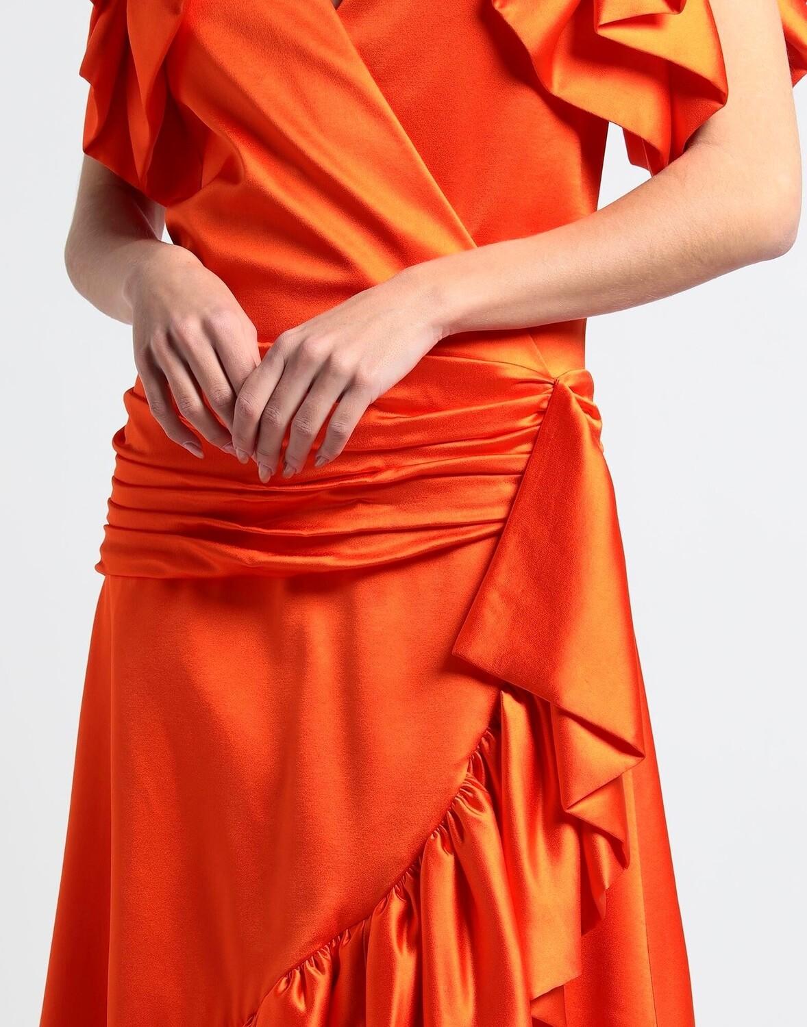 Атлас, оборки, одноцветное изделие, v-образный вырез, короткие рукава, полностью на подкладке, застежка-молния, без карманов, асимметричный низ, платье