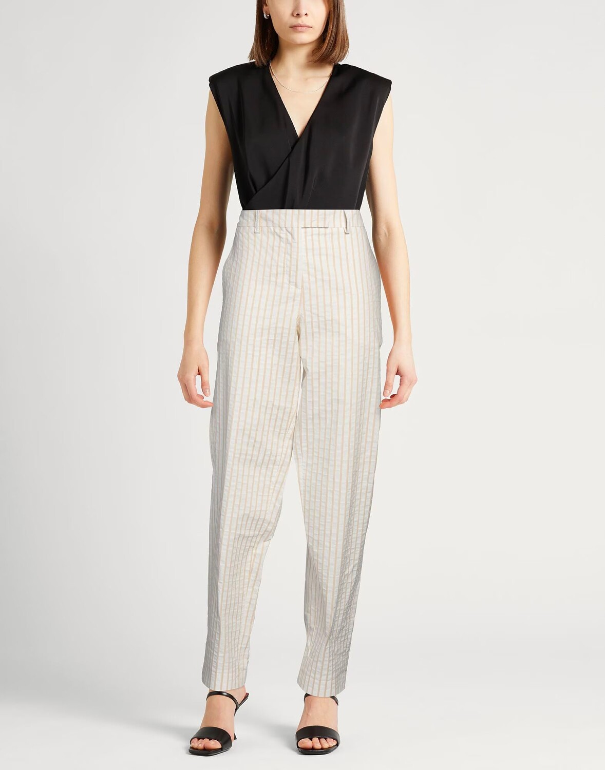 Зауженные брюки, ткань, без аппликаций, в полоску, средняя посадка, стандартный крой, застежка-молния, застежка на крючки, множество карманов, химчистка, нельзя отбеливать, нельзя сушить в стиральной машине