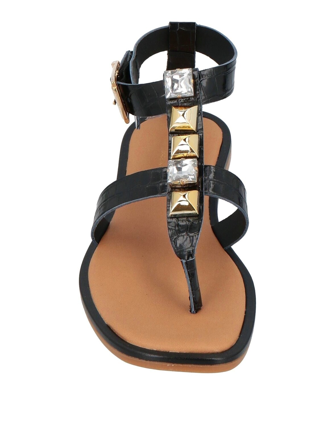 Кожа, контрастные аппликации, крокодиловый принт, одноцветное изделие с аппликациями, внутренняя часть из ткани, ремешок на щиколотке с пряжкой, квадратный носок, без каблука, резиновая подошва, содержит нетекстильные части животного происхождения, босоножки с ремешком на щиколотке