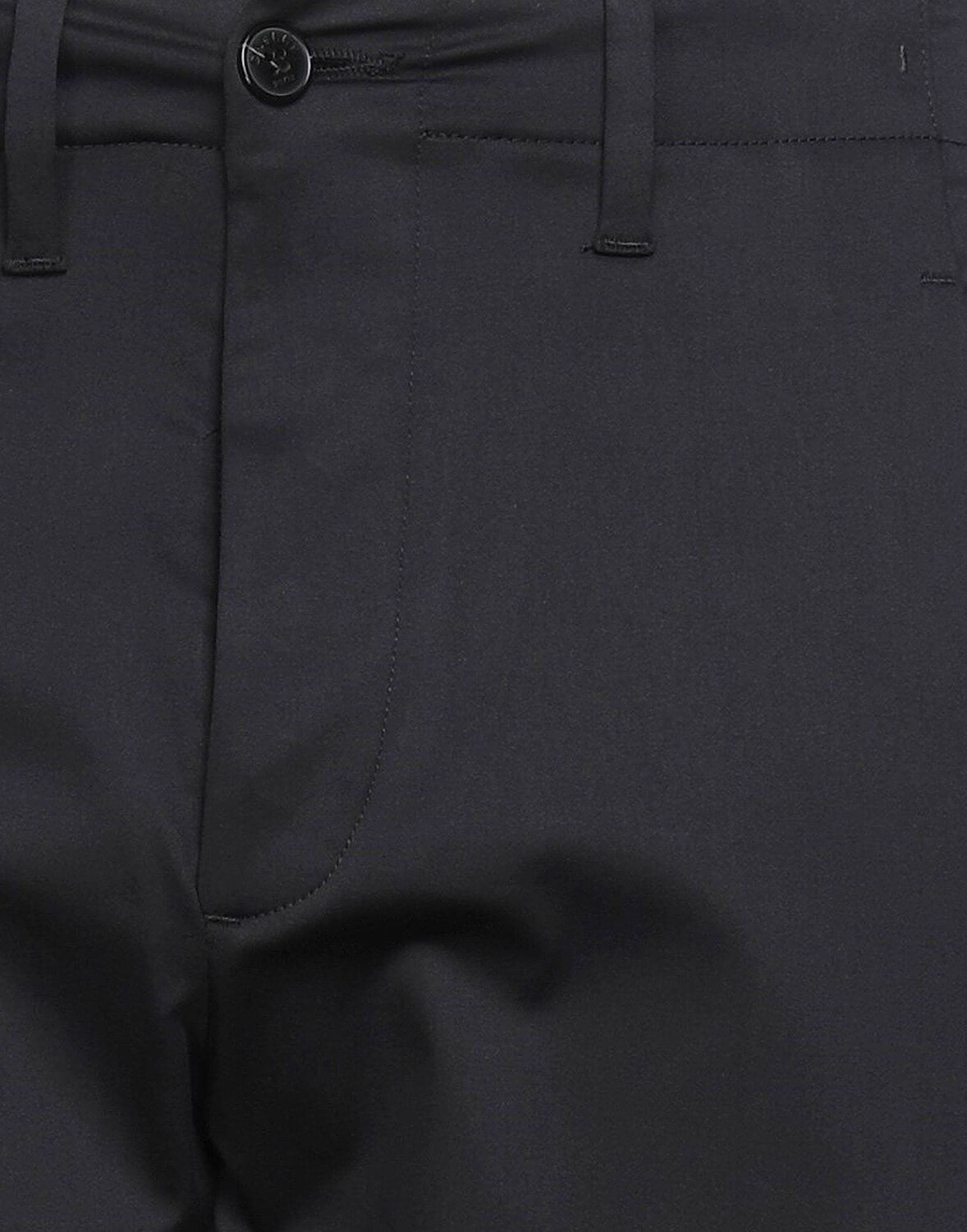 Полотняное переплетение, однотонное изделие с аппликациями, контрастные аппликации, завышенная талия, классический крой, зауженная брючина, пуговицы, множество карманов, эластичная ткань