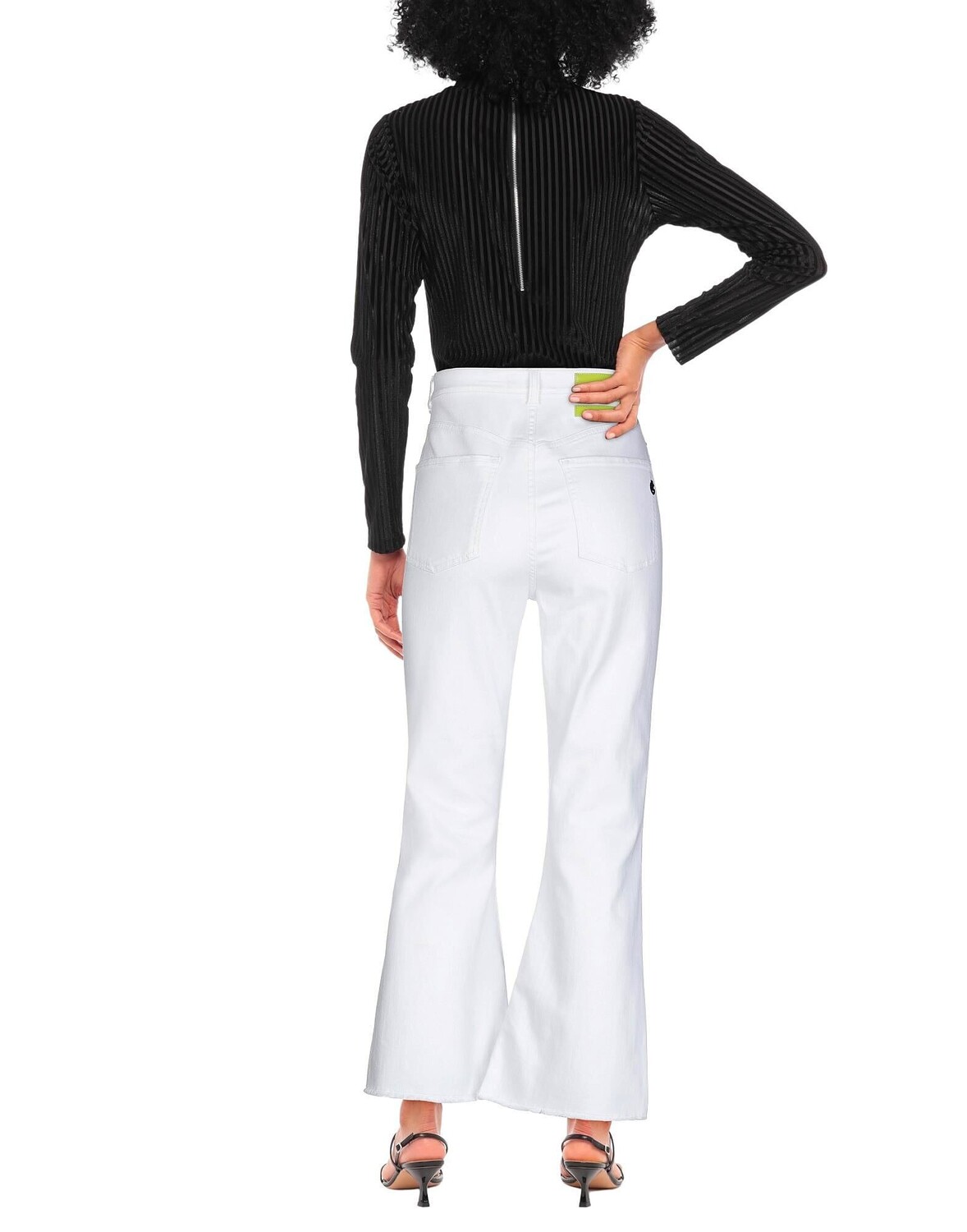 Деним, логотип, стразы, однотонное изделие, цветная стирка, высокая талия, застежка спереди, застежка-молния, множество карманов, стрейч